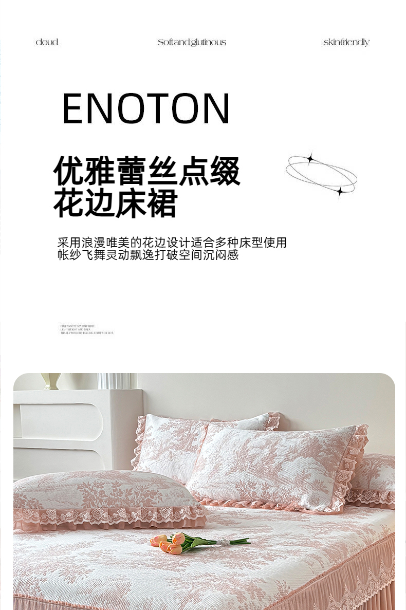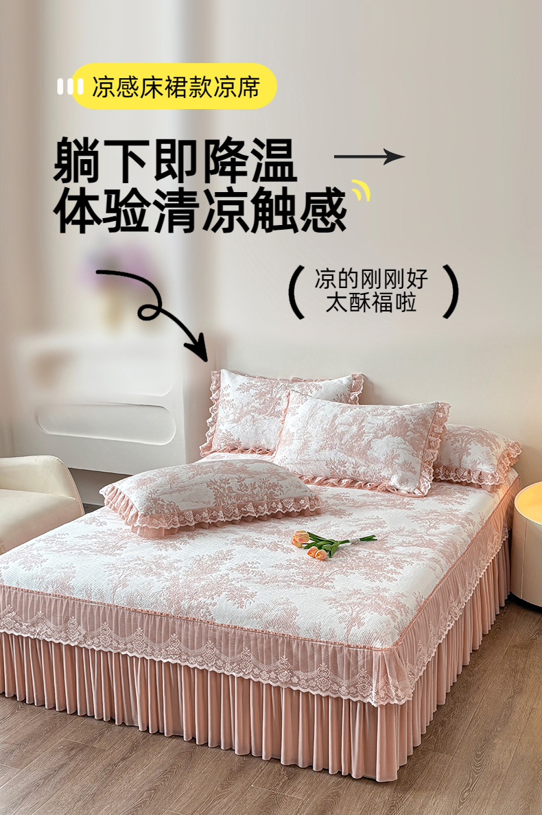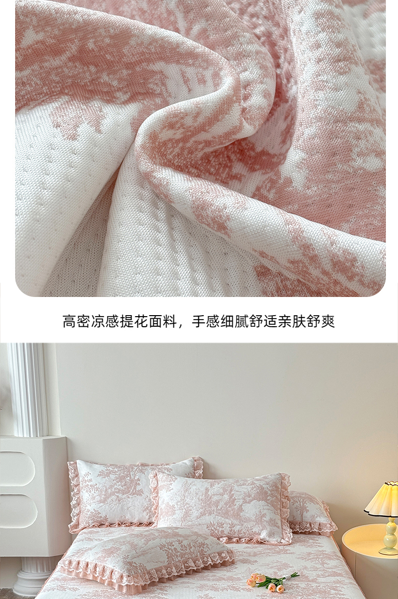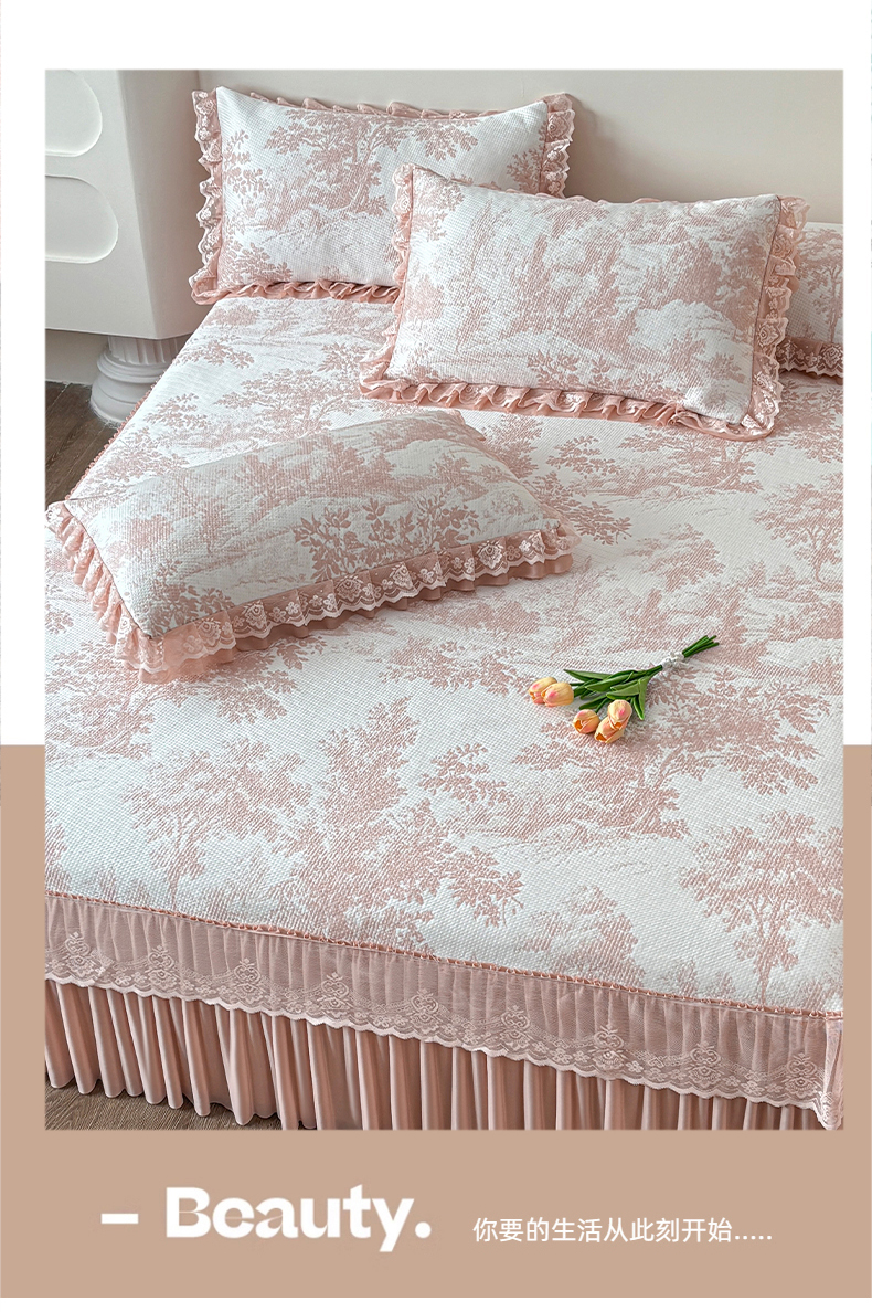 金艾草 2026新款PE双面提花床裙凉席三件套 清新-粉色