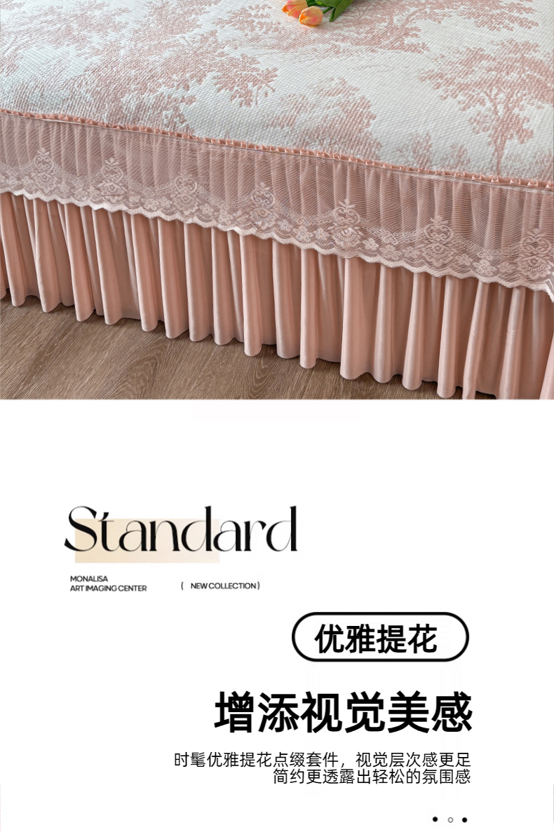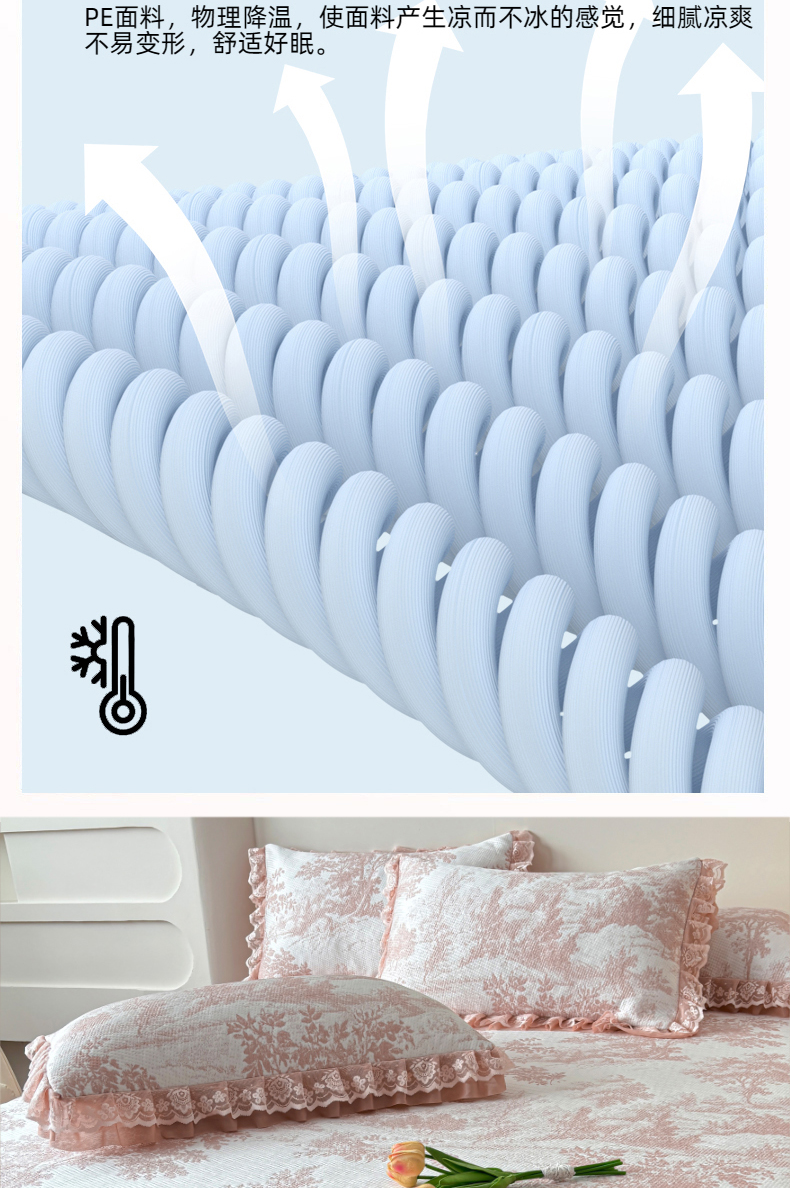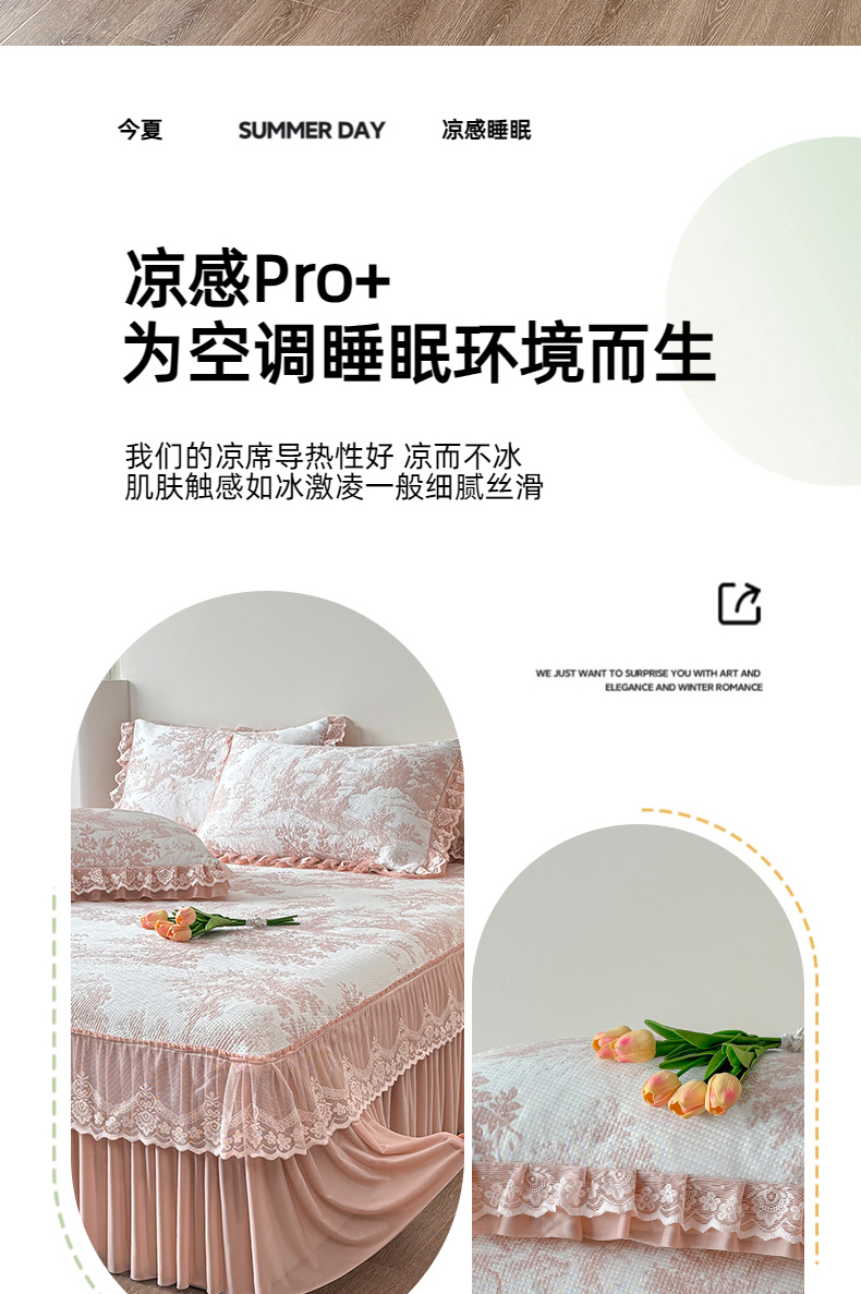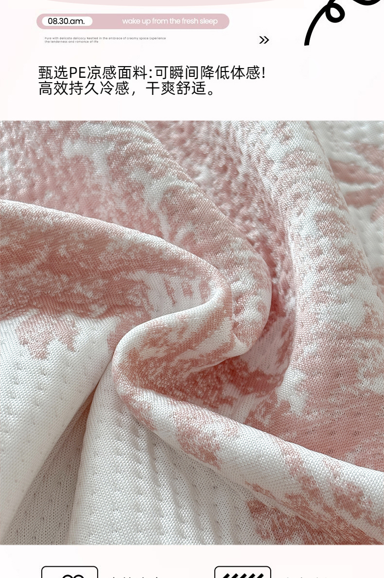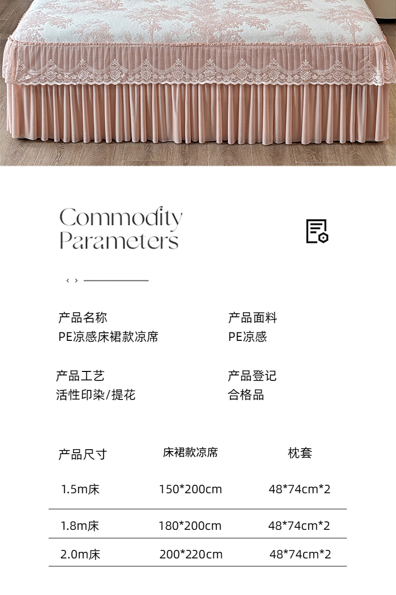 商品名称:金艾草 2026新款PE双面提花床裙凉席三件套 清新-粉色