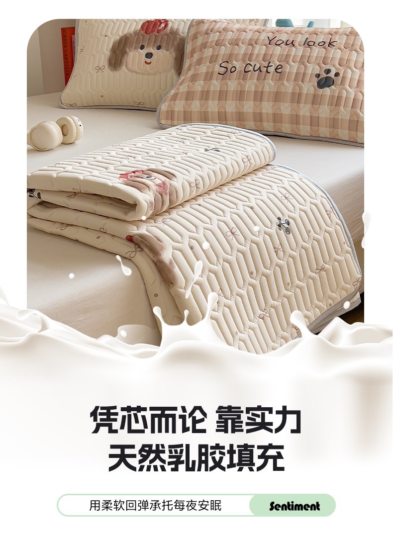 摩妮卡 2026新款数码大版小清新乳胶凉席床席款三件套-场景二 活泼毛娃娃