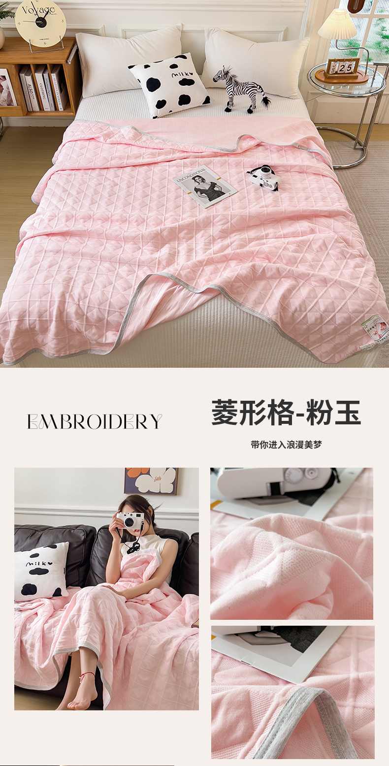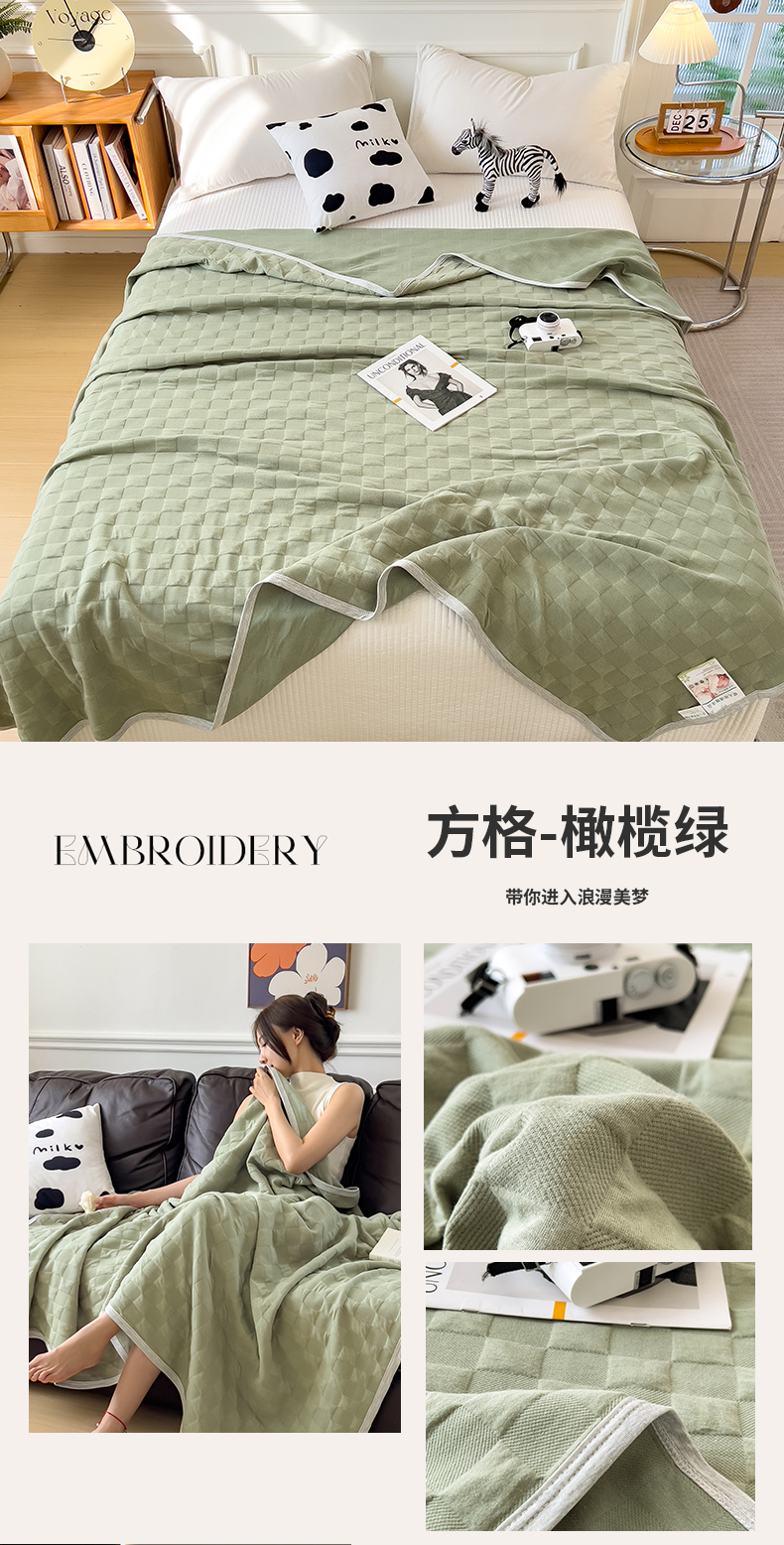 (总)云恋家纺 2026新款空气提花纯棉三层纱夏被全棉学生午睡被薄款床单沙发盖毯办公室披肩毯,方格-本白,方格-灰卡,方格-咖色,格调-豆沙,格调-浅灰,格调-雅白,菱形格-粉玉,方格-橄榄绿,菱形格-奶黄,菱形格-奶雾灰,菱形格-浅蓝
