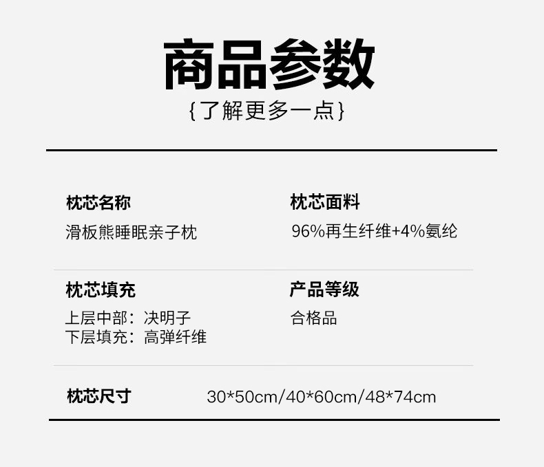 商品名称:(总)鼎晟纺 2026新款滑板熊决明子睡眠亲子枕儿童学生枕头成人枕芯