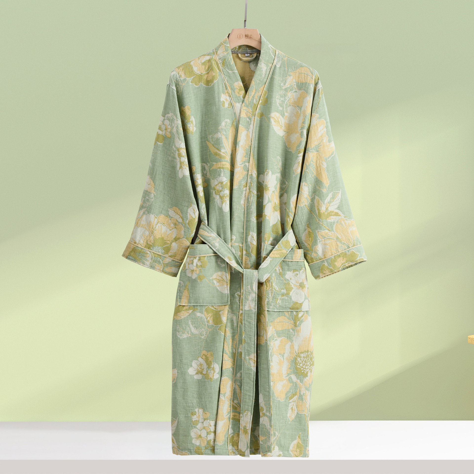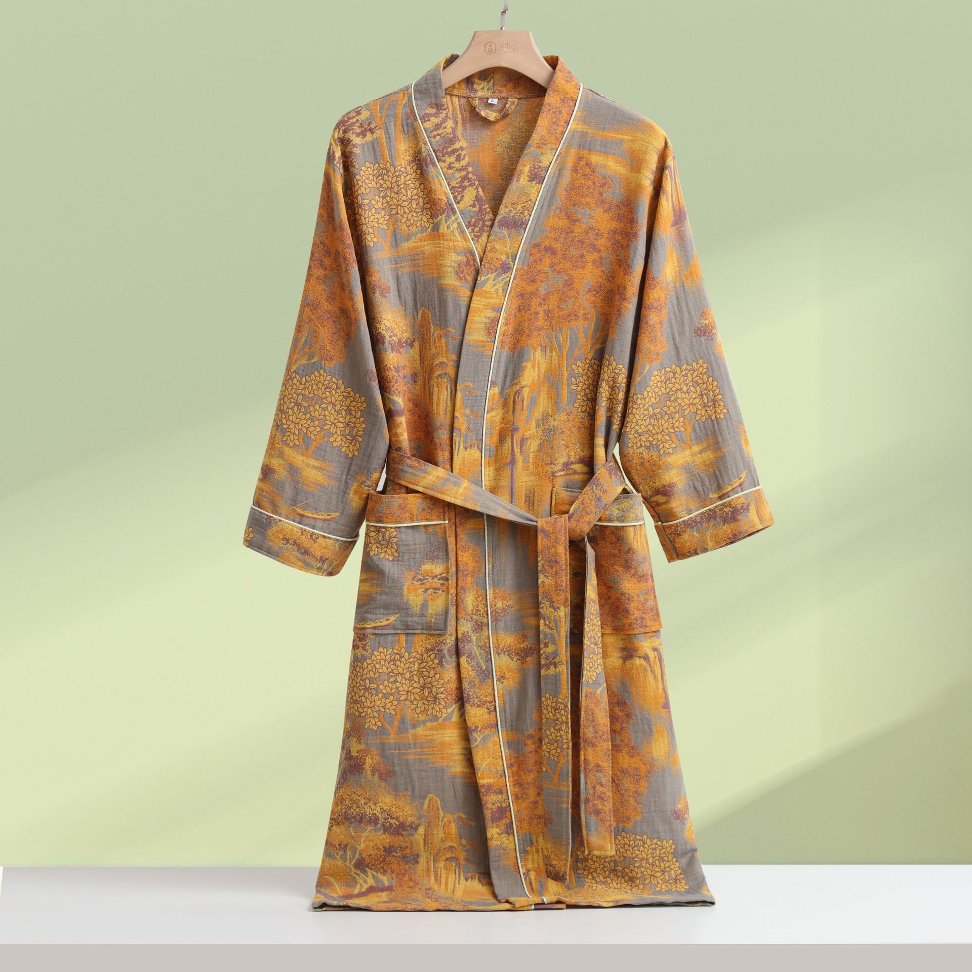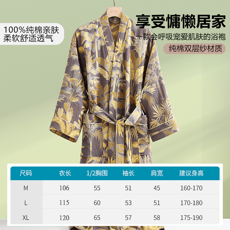 商品名称:(总)洛兰沙家居馆 跨境新款纯棉双层纱浴袍全棉和服长袖情侣睡衣家居服吸水浴衣批发
