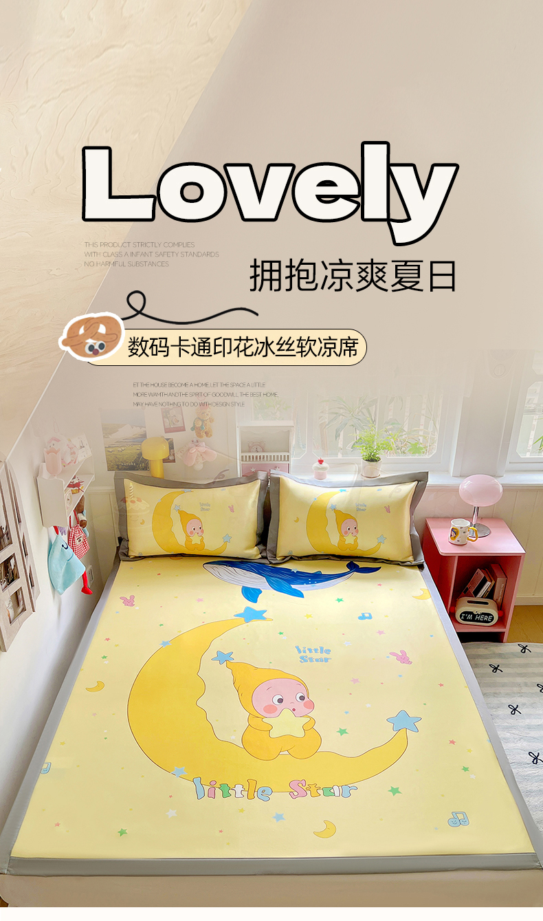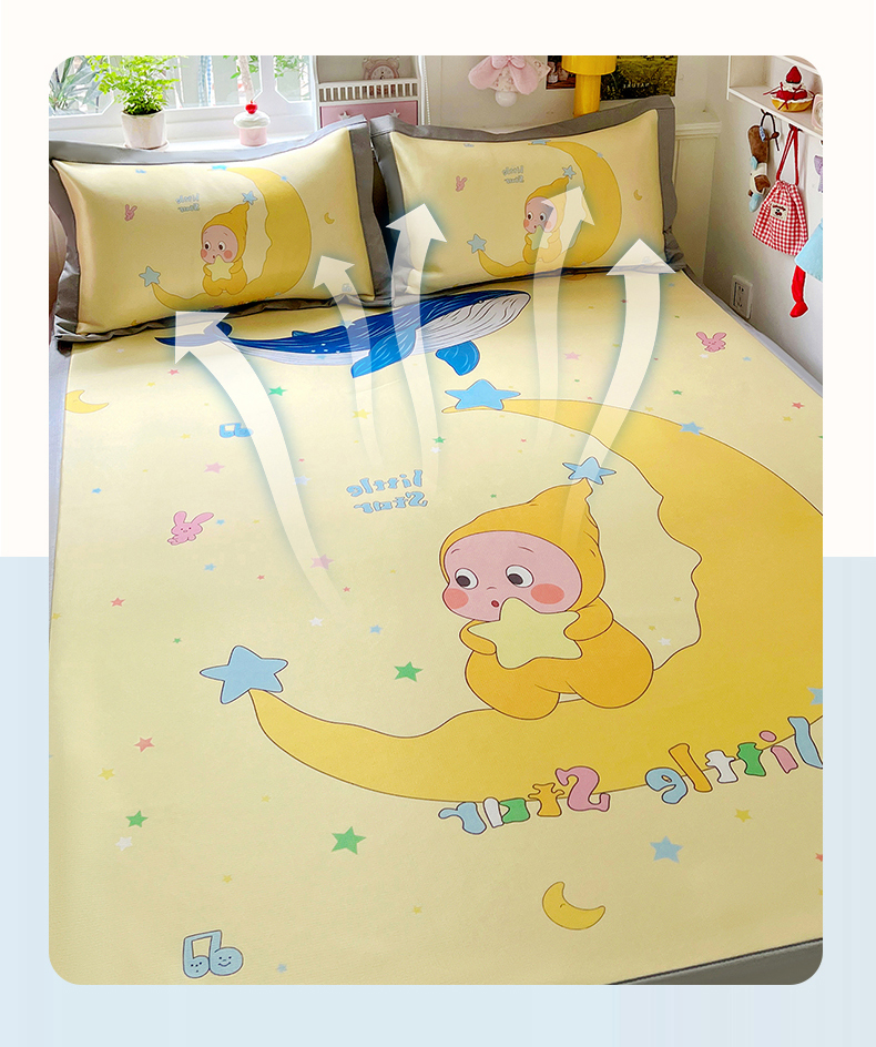 KT猫直营店 2026新款数码卡通印花凉感冰丝软凉席席子 晚安小星-席