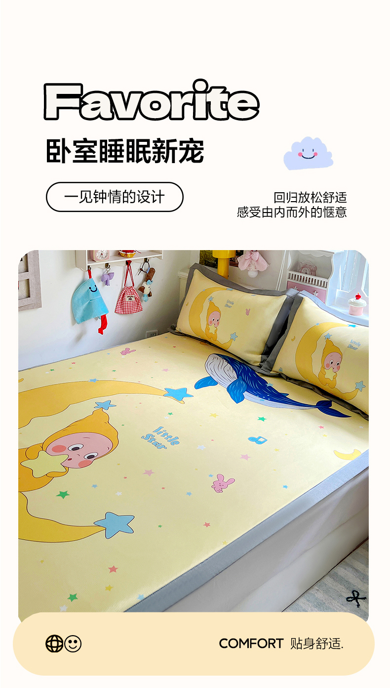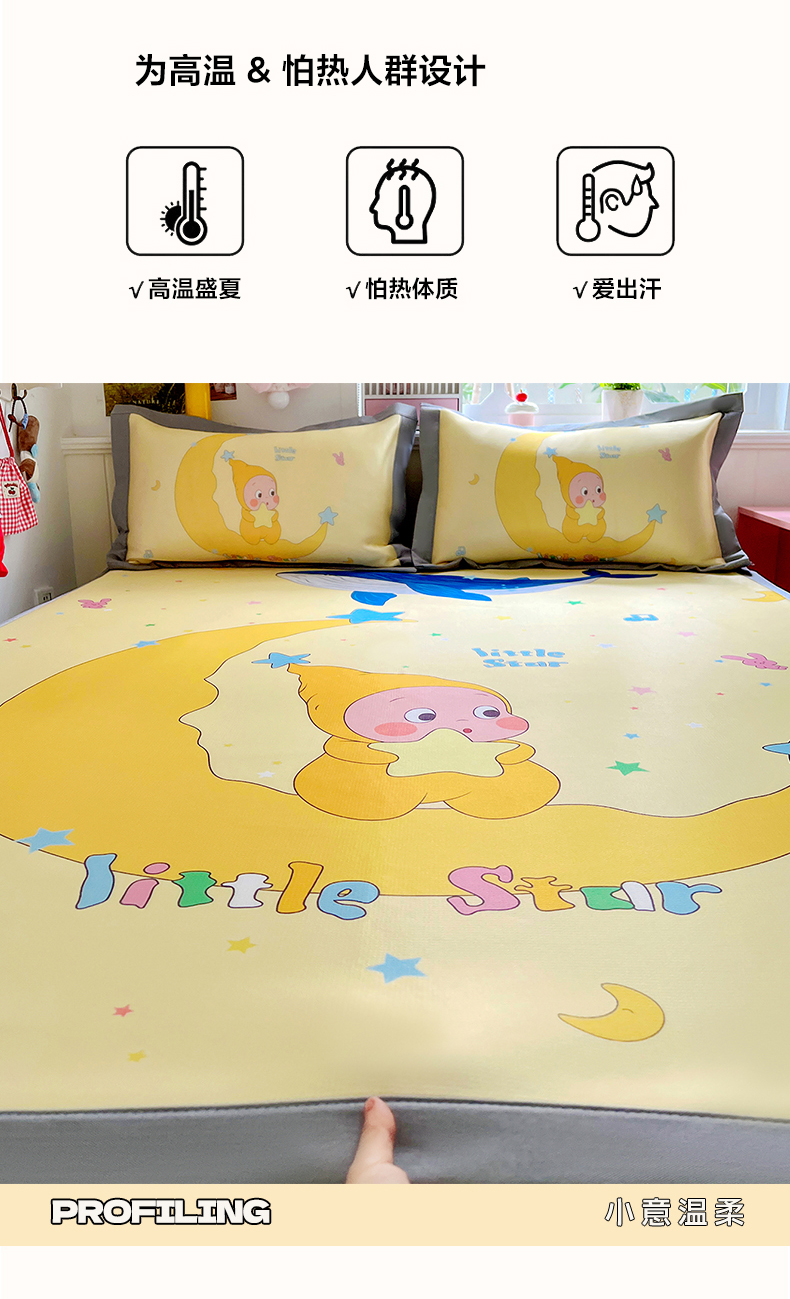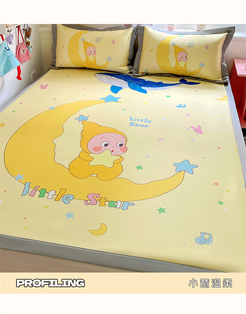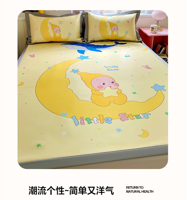 商品名称:KT猫直营店 2026新款数码卡通印花凉感冰丝软凉席席子 晚安小星-席