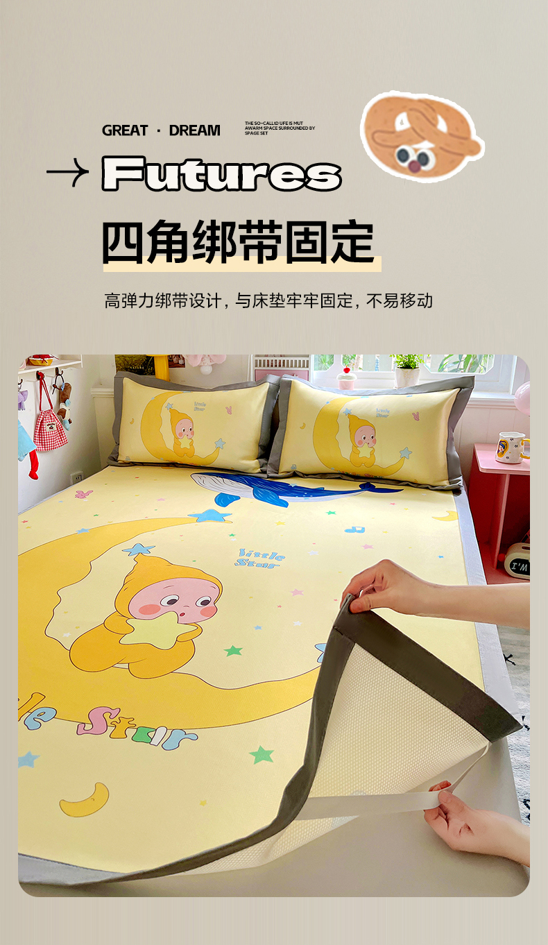 (总)KT猫直营店 2026新款数码卡通印花凉感冰丝软凉席席子,波点熊-席,登月叮当黄-席,登月叮当蓝-席,飞行汪-席,懒懒熊-席,晚安小星-席,小确幸-席,星星人派对-席,星芽芽-席,星仔面包铺-席,眼镜狗-席