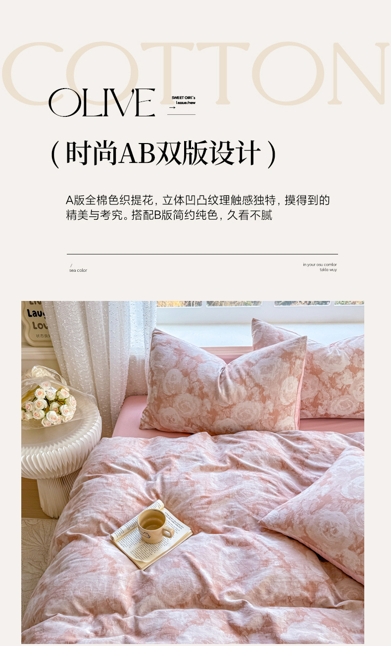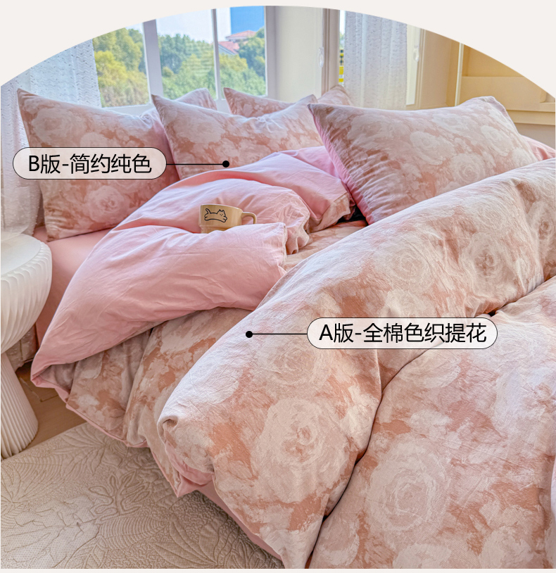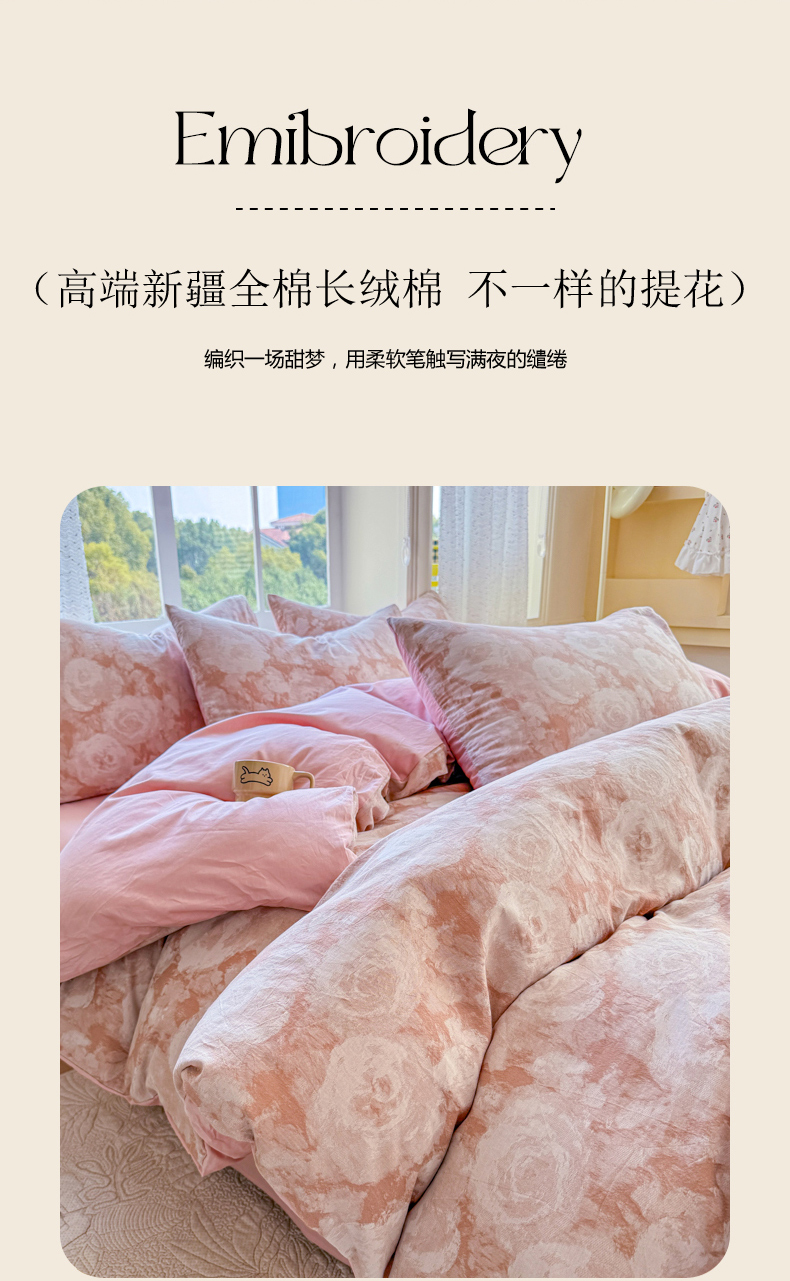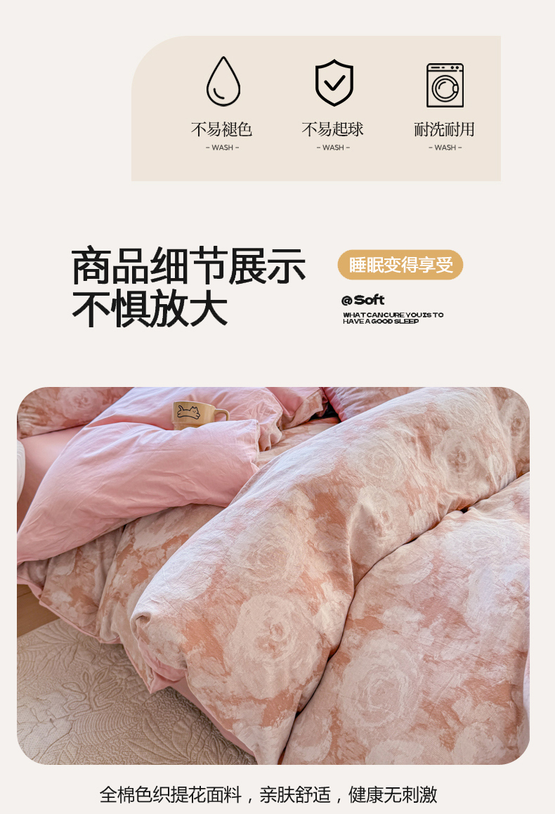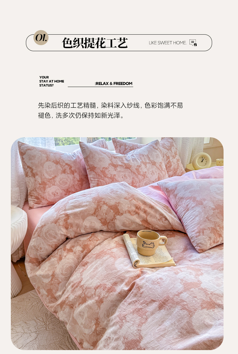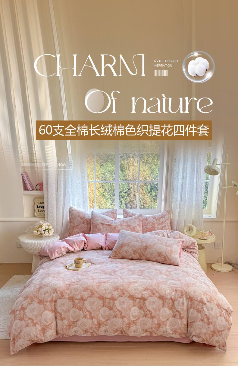 商品名称:(总)疆东2026新款A类60支全棉长绒棉纯棉色织提花四件套水洗全棉纯棉厚织提花肌理棉麻被套四件套