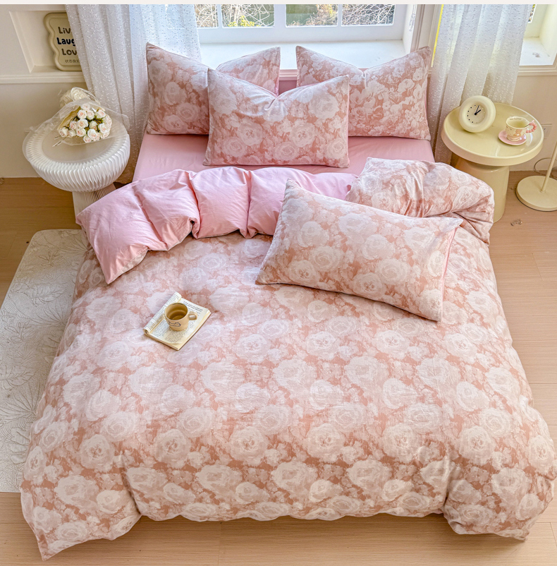 (总)2026高端韩版法式荷叶边印花纯棉全棉双层纱四件套复古赫本公主风少女花边全棉纯棉双层纱四件套,青黛,时光里里,疏影,暮色玫瑰,蔷薇恋人,爱丽丝,木槿,芳菲