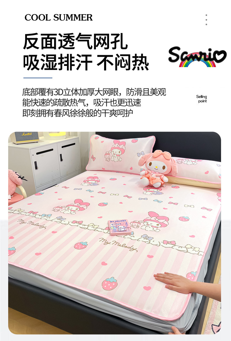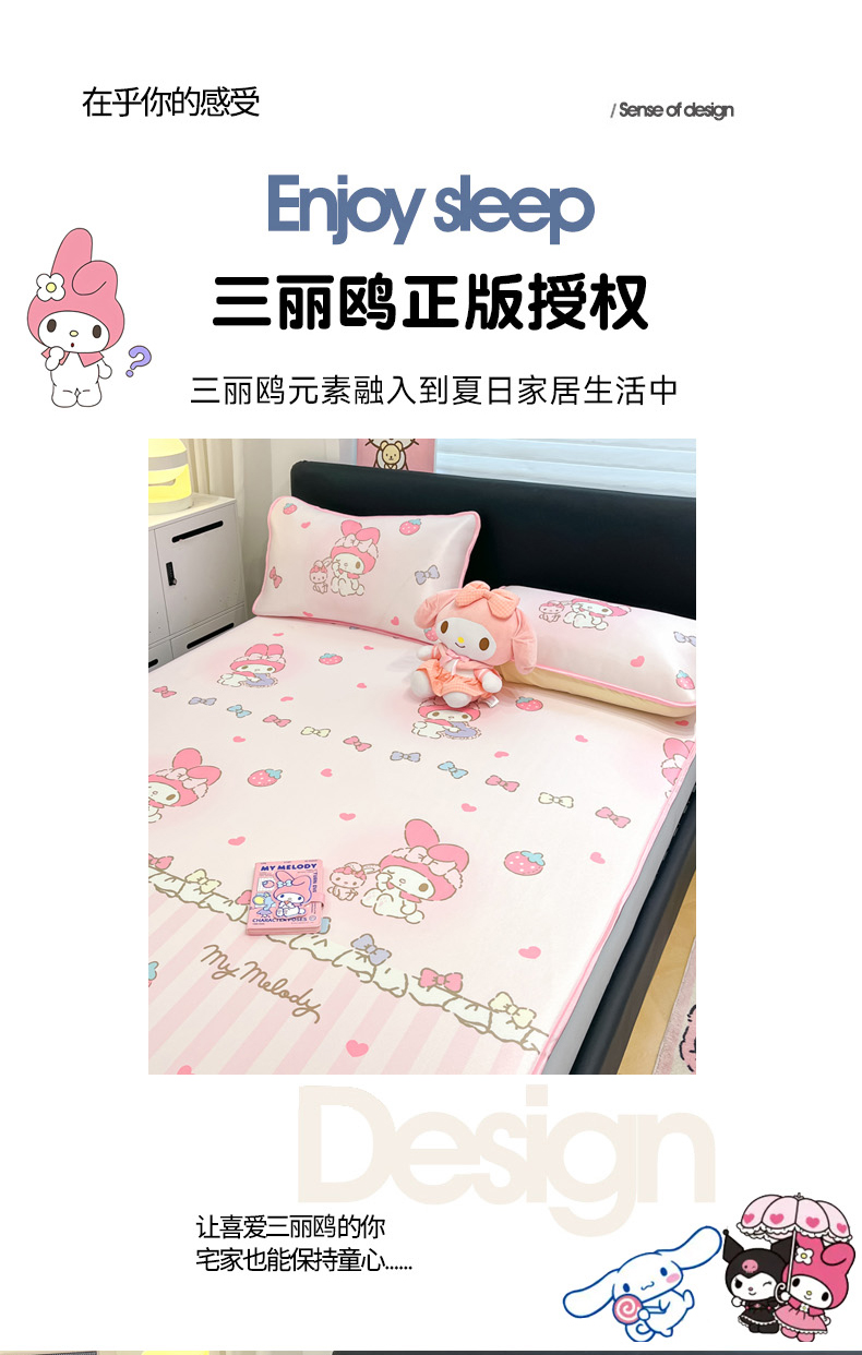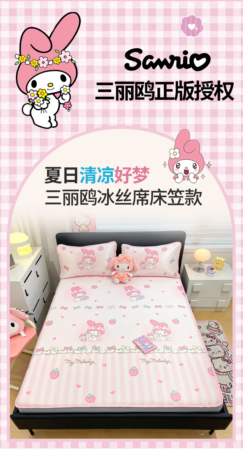 当前位置: 91家纺网 > 商品网购 > 床上用品 > 凉席 > 凉席套件 > 暮思家居 2026新款三丽鸥正版授权数码印花A类可机洗1200D冰丝凉席三件套床笠款系列 床笠款-洋娃娃美乐蒂