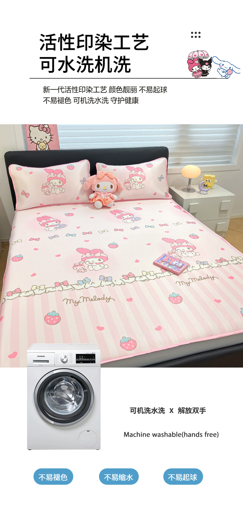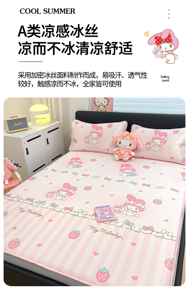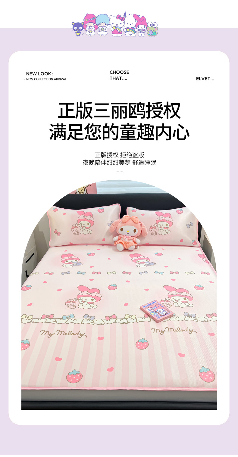 当前位置: 91家纺网 > 商品网购 > 床上用品 > 凉席 > 凉席套件 > 暮思家居 2026新款三丽鸥正版授权数码印花A类可机洗1200D冰丝凉席三件套床笠款系列 床笠款-洋娃娃美乐蒂