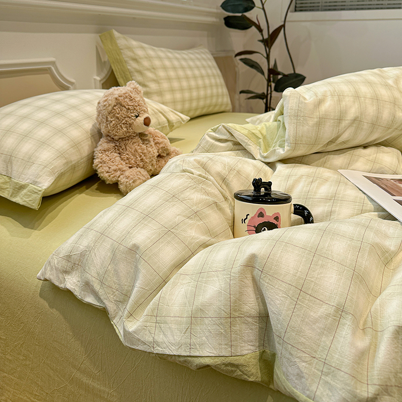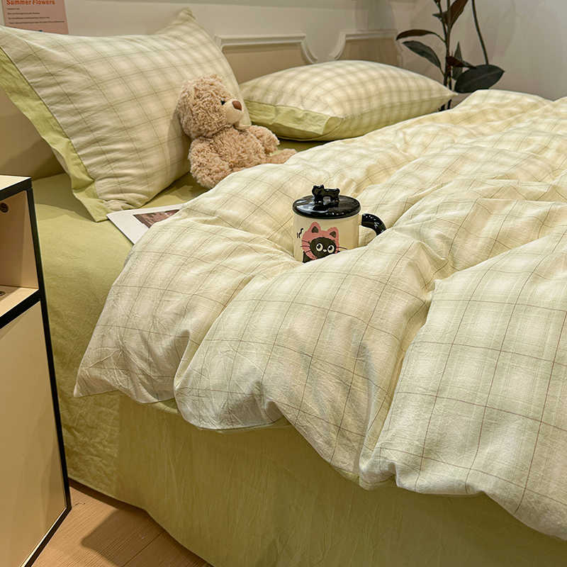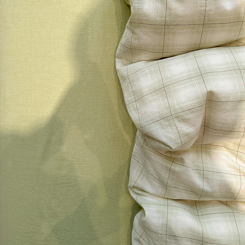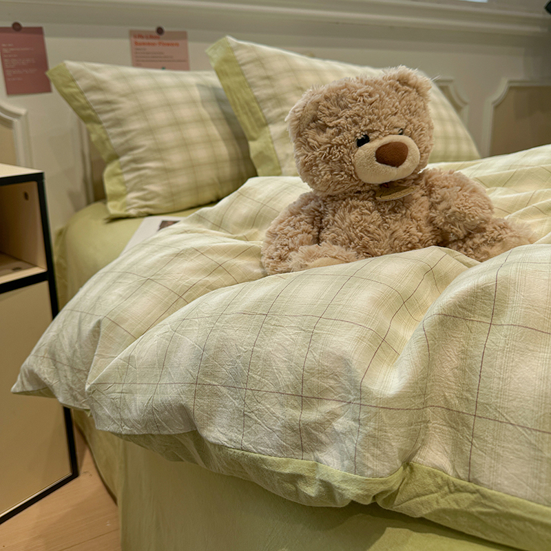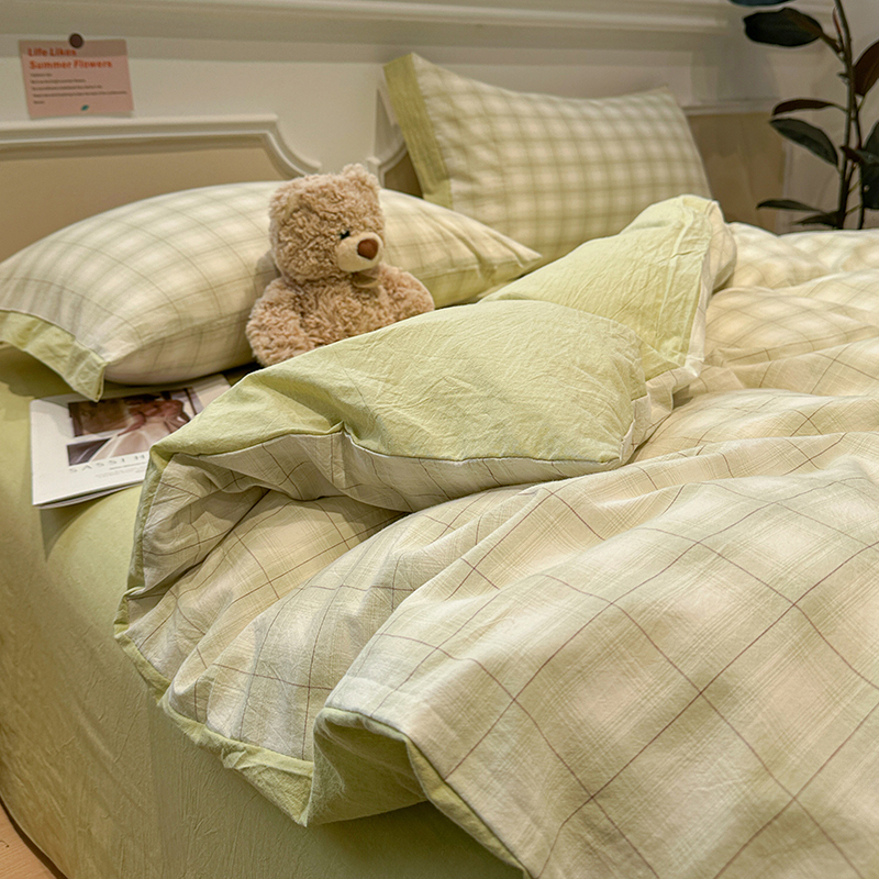 当前位置: 91家纺网 > 商品网购 > 床品套件 > 四件套 > 全棉普通四件套 > 麦朵家居 2026色织全棉水洗棉四件套暖格系列无印风床笠单被套长绒棉套件 初春绿
