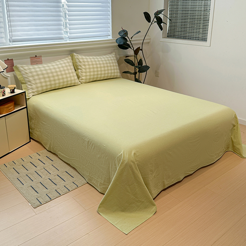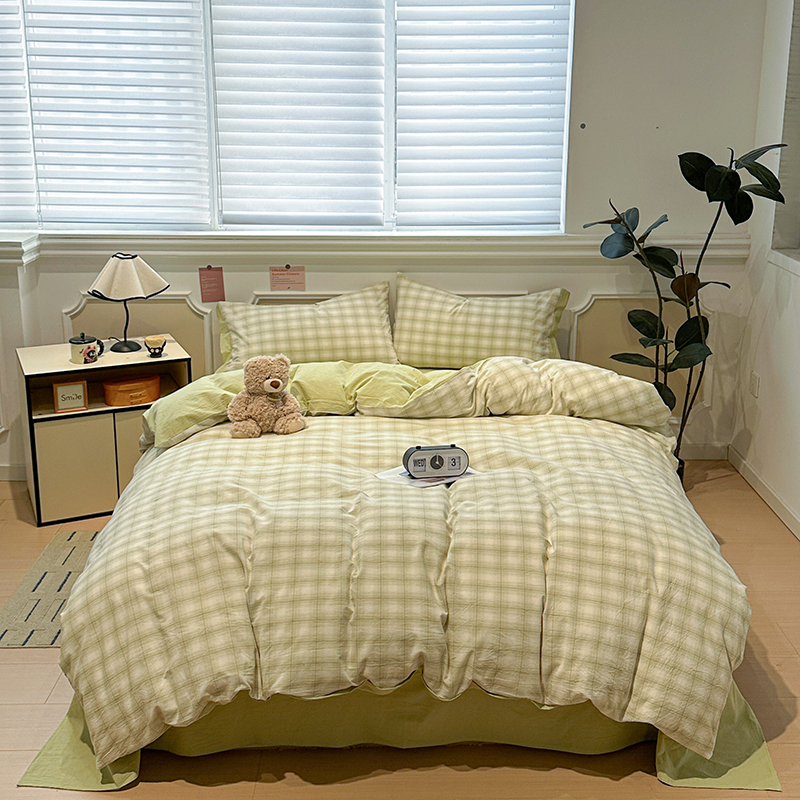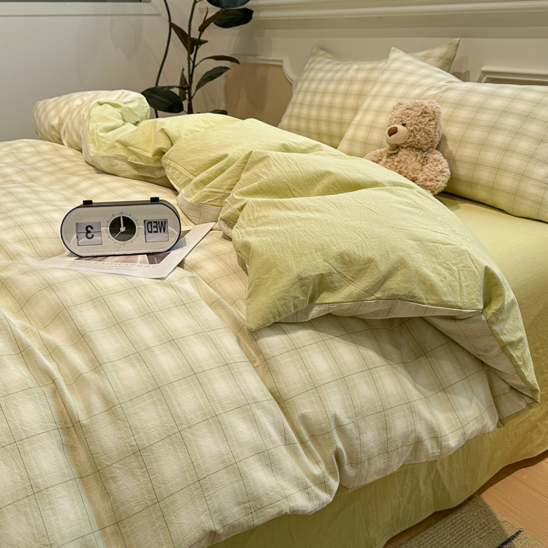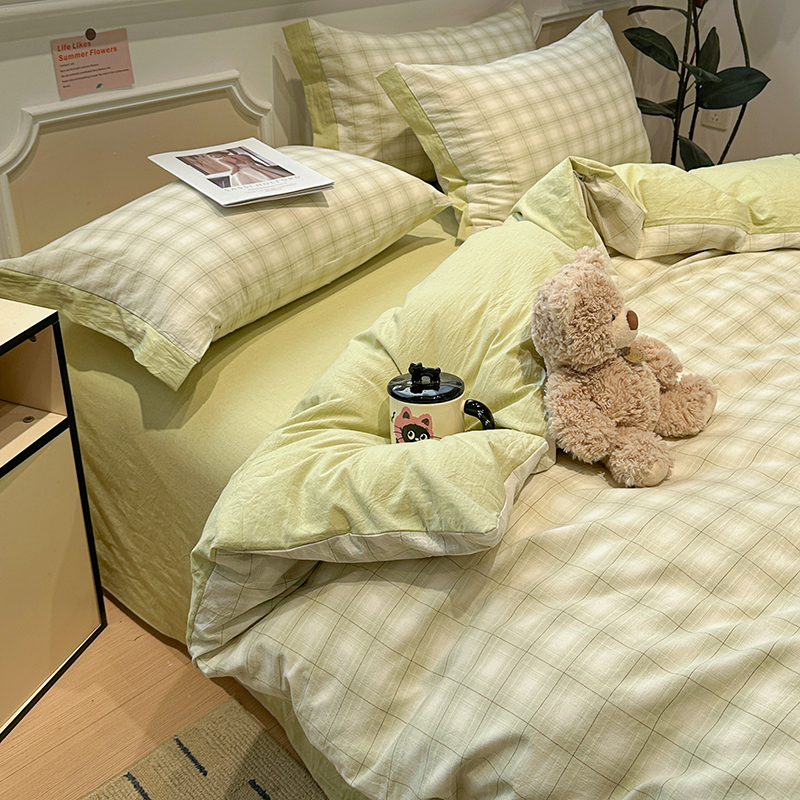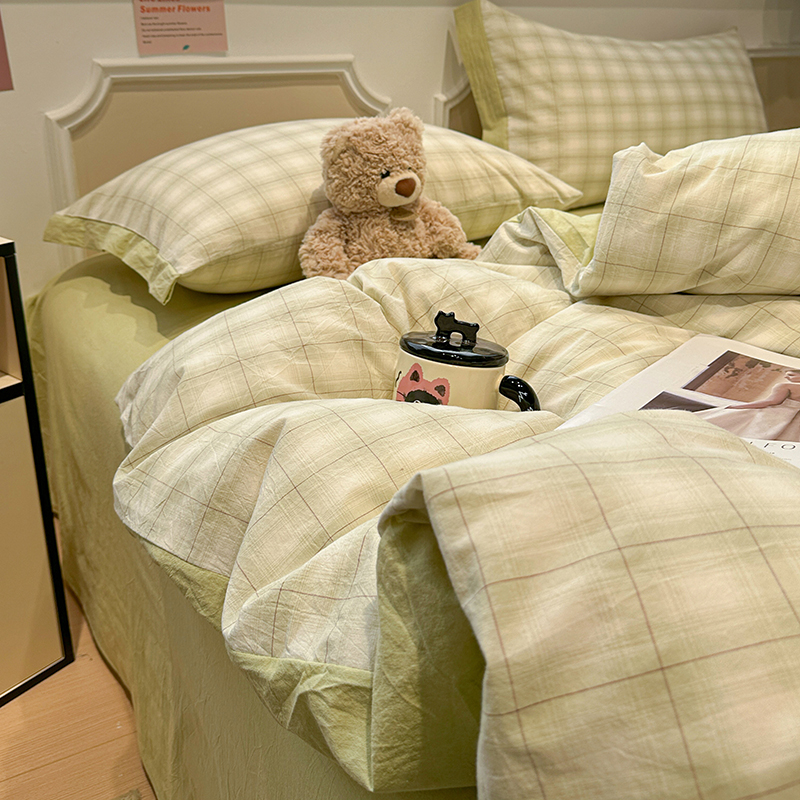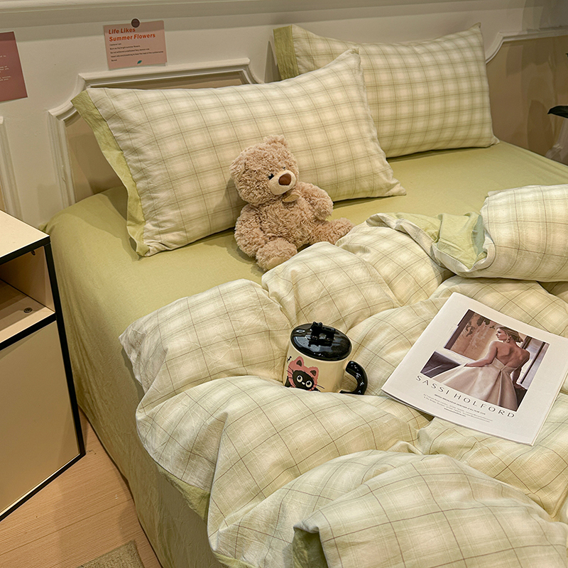 当前位置: 91家纺网 > 商品网购 > 床品套件 > 四件套 > 全棉普通四件套 > 麦朵家居 2026色织全棉水洗棉四件套暖格系列无印风床笠单被套长绒棉套件 初春绿