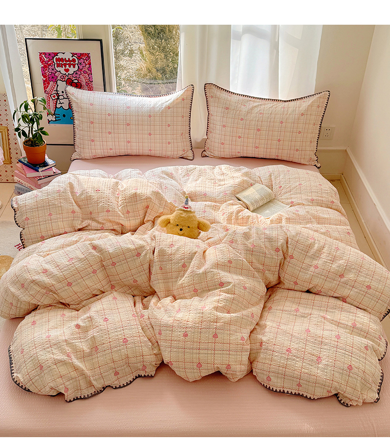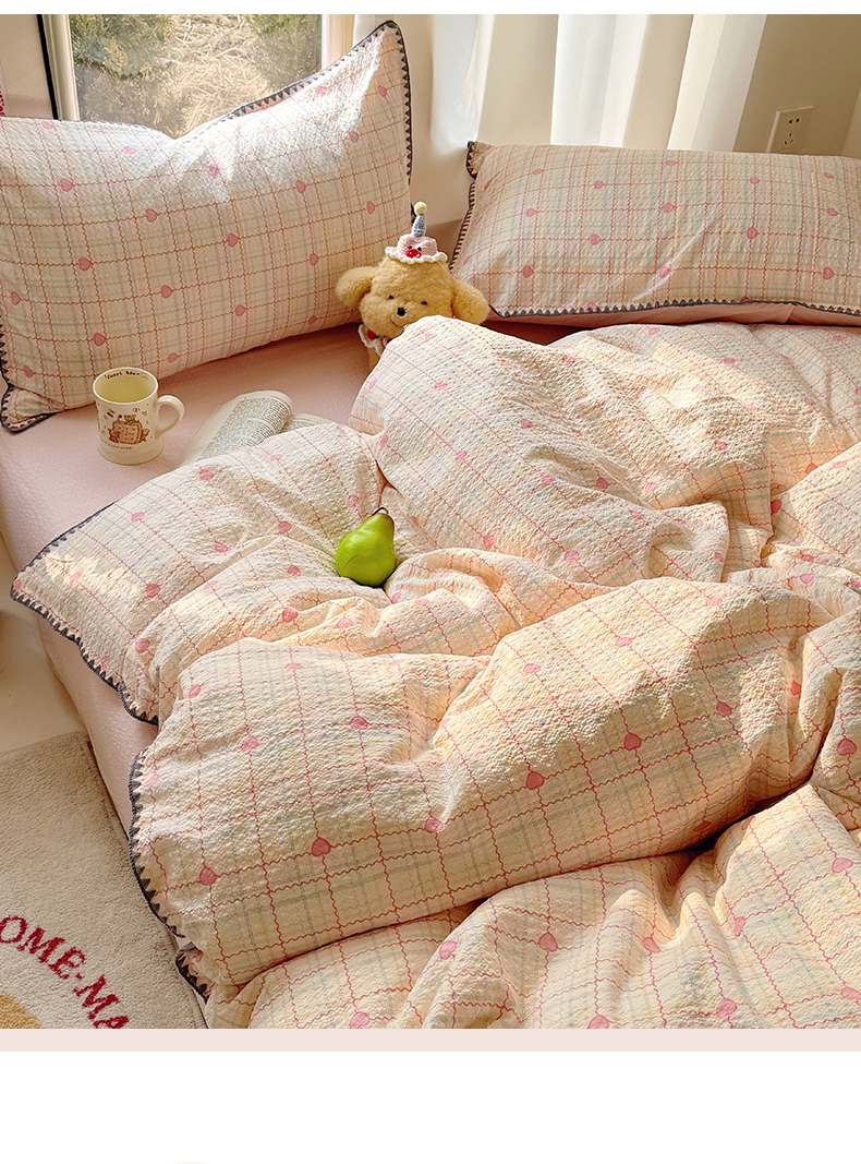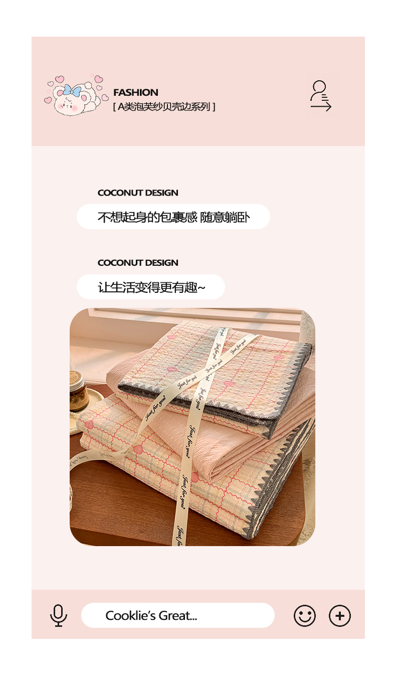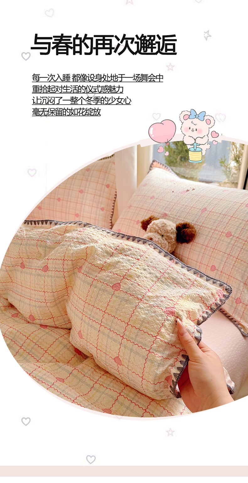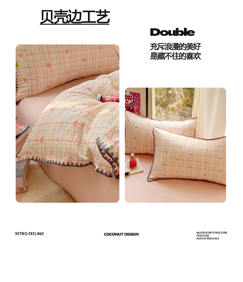 当前位置: 91家纺网 > 商品网购 > 床品套件 > 四件套 > 其它四件套 > 玉海棠家纺 2026新款高品质A类泡芙纱甜栗贝壳边套件系列-小红书推荐(110g) 甜栗-格格心
