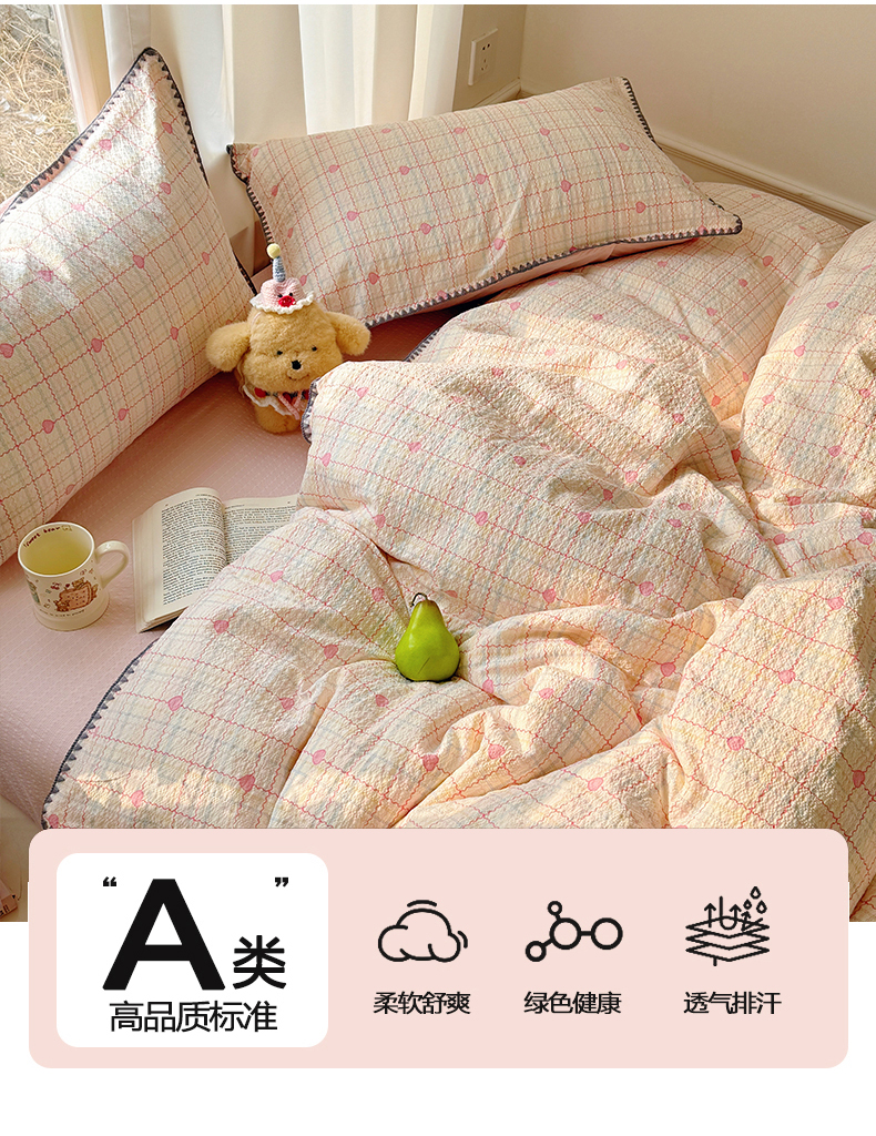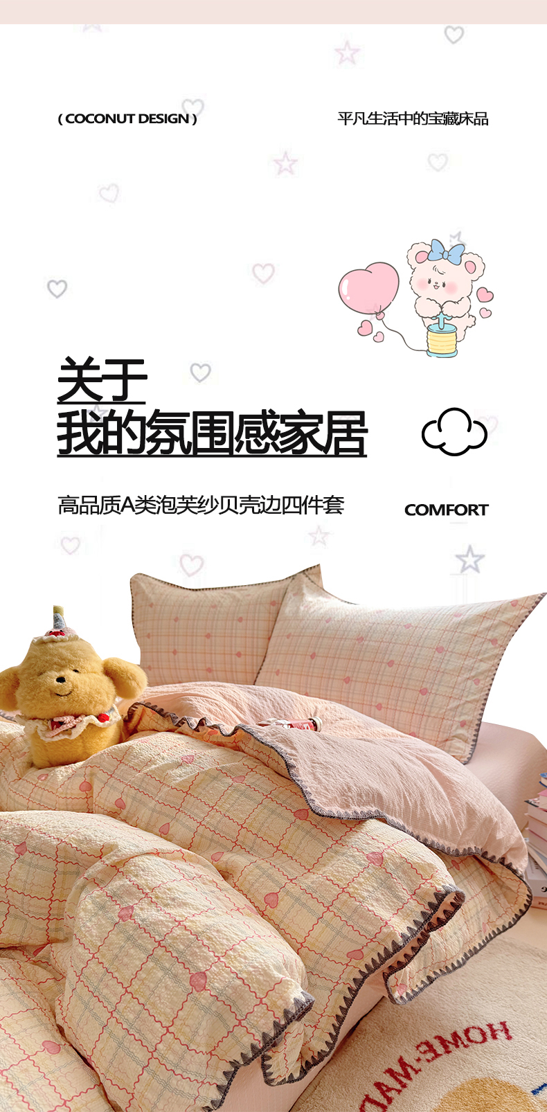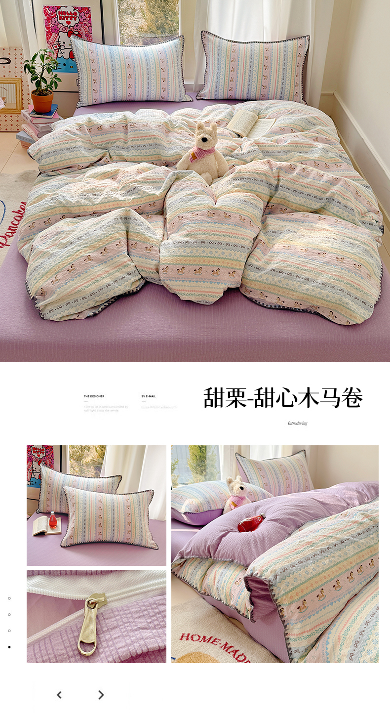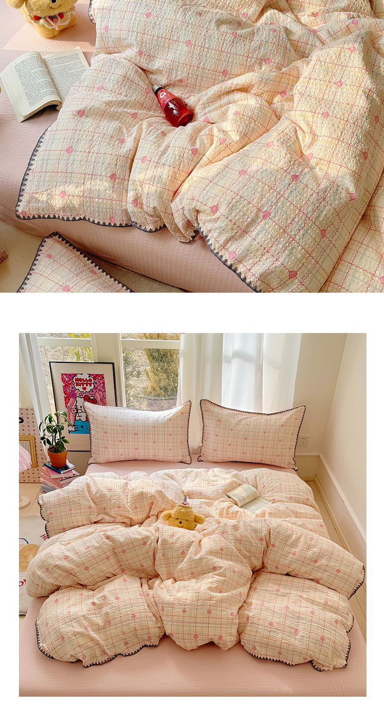 当前位置: 91家纺网 > 商品网购 > 床品套件 > 四件套 > 其它四件套 > 玉海棠家纺 2026新款高品质A类泡芙纱甜栗贝壳边套件系列-小红书推荐(110g) 甜栗-格格心