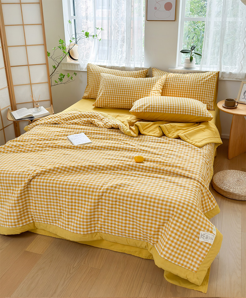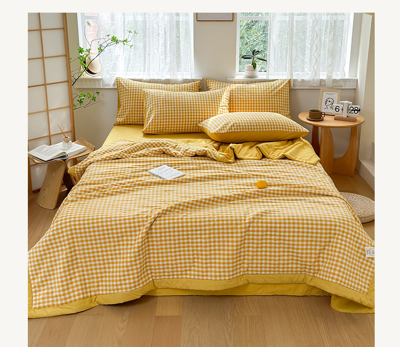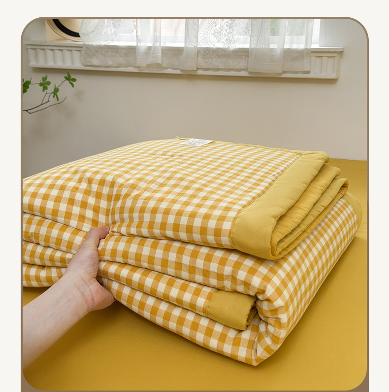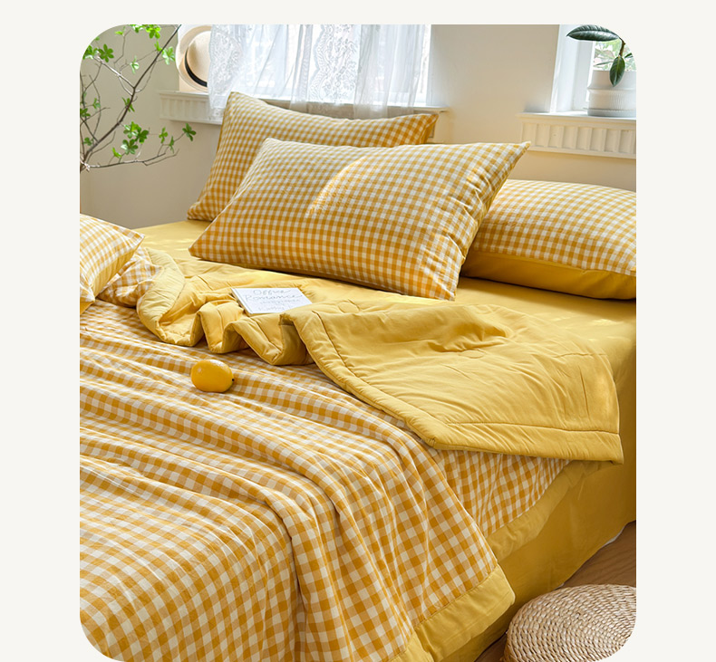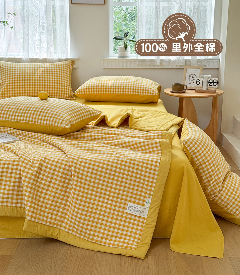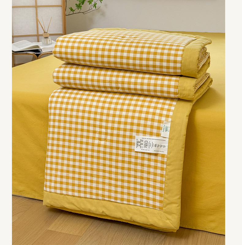 雯雨家纺 2026新款A类全棉色织里外全棉夏被 黄小格