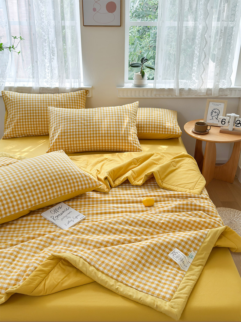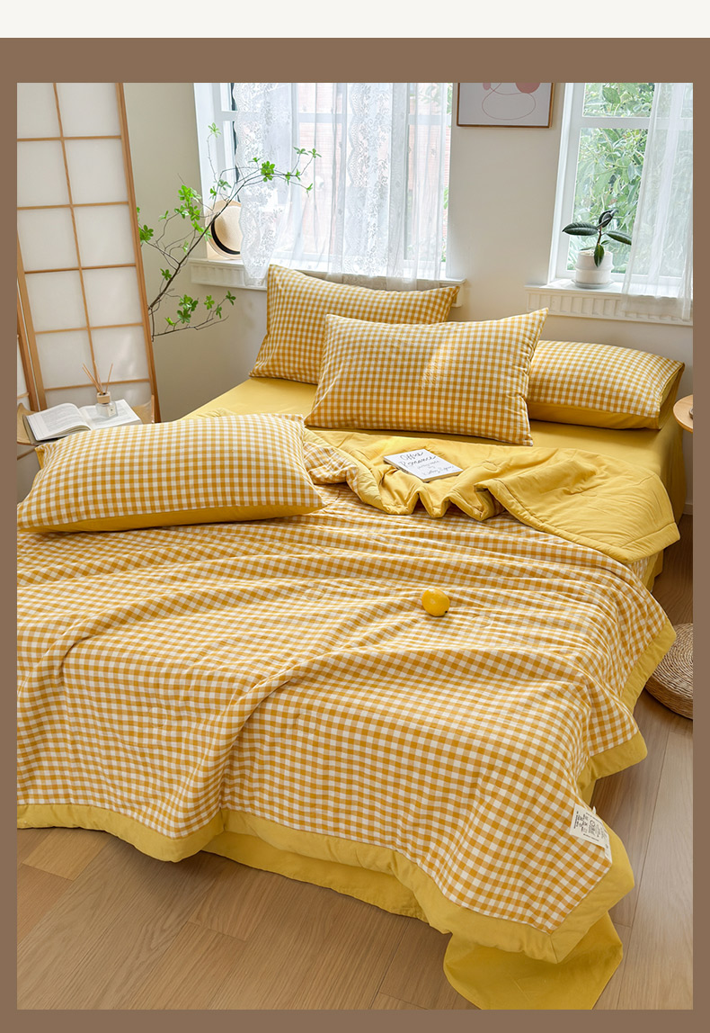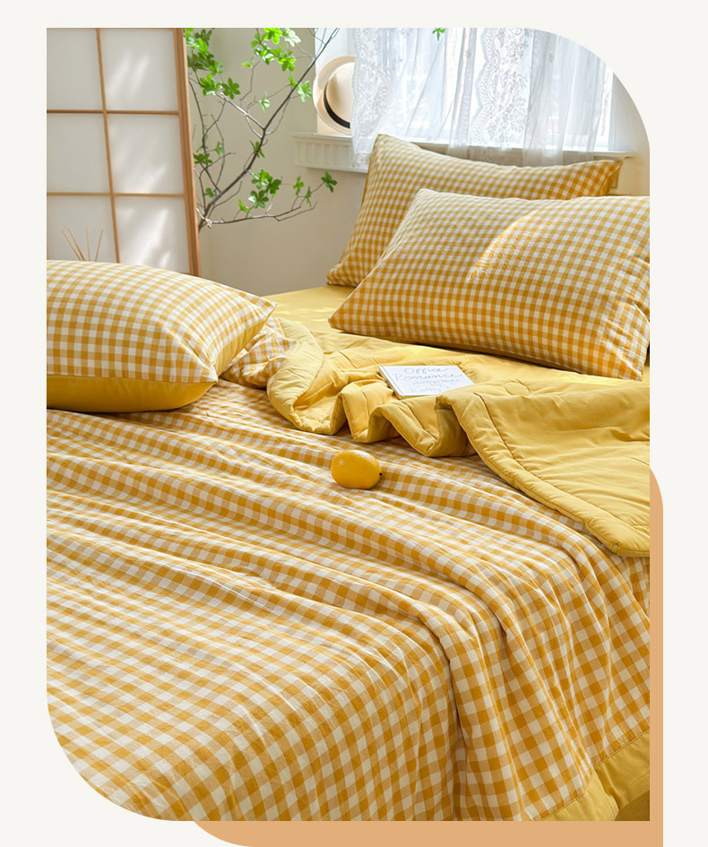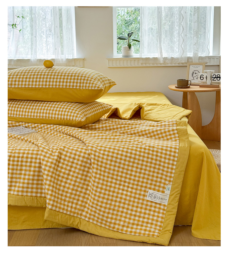 雯雨家纺 2026新款A类全棉色织里外全棉夏被 黄小格