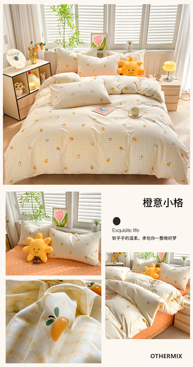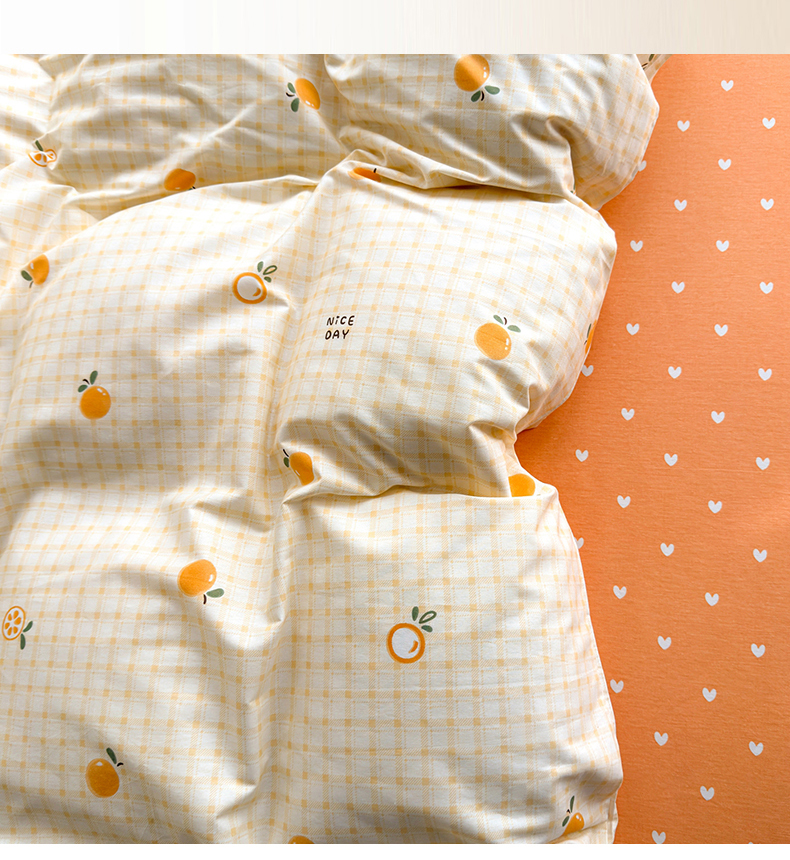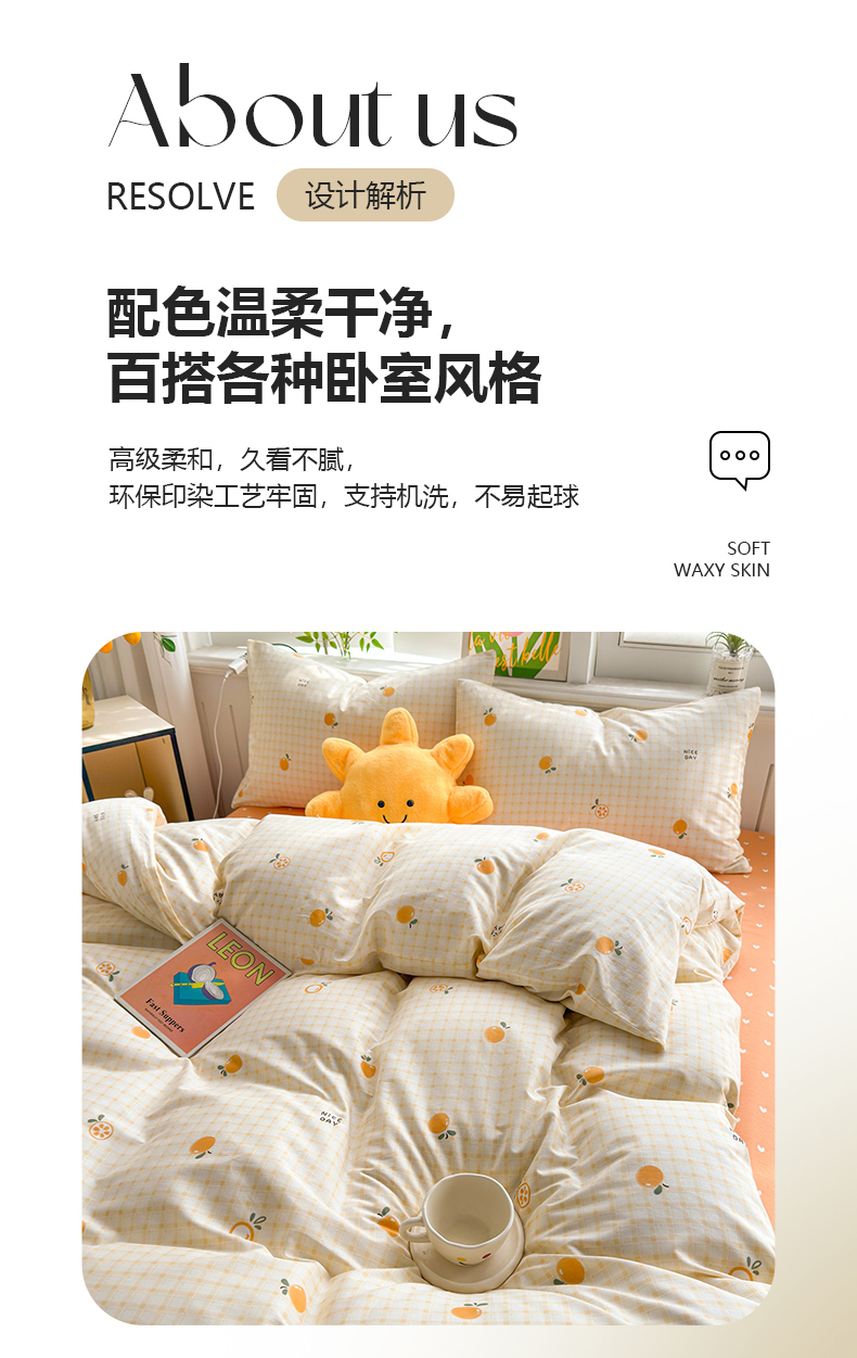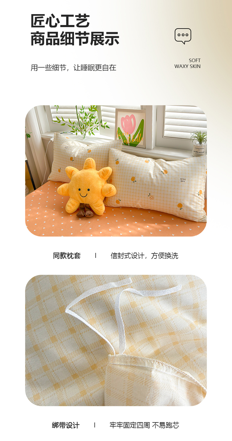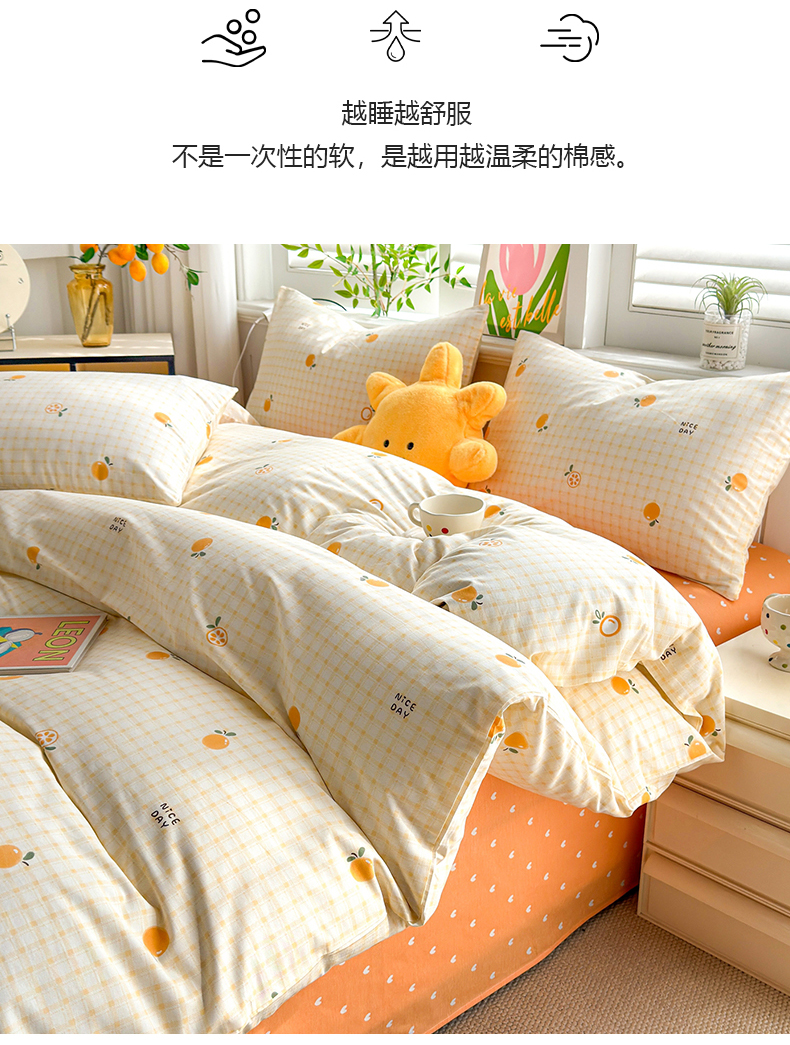 黛妮雅 2026新款AB版全棉印花单被套床单枕套 送买家秀 橙意小格