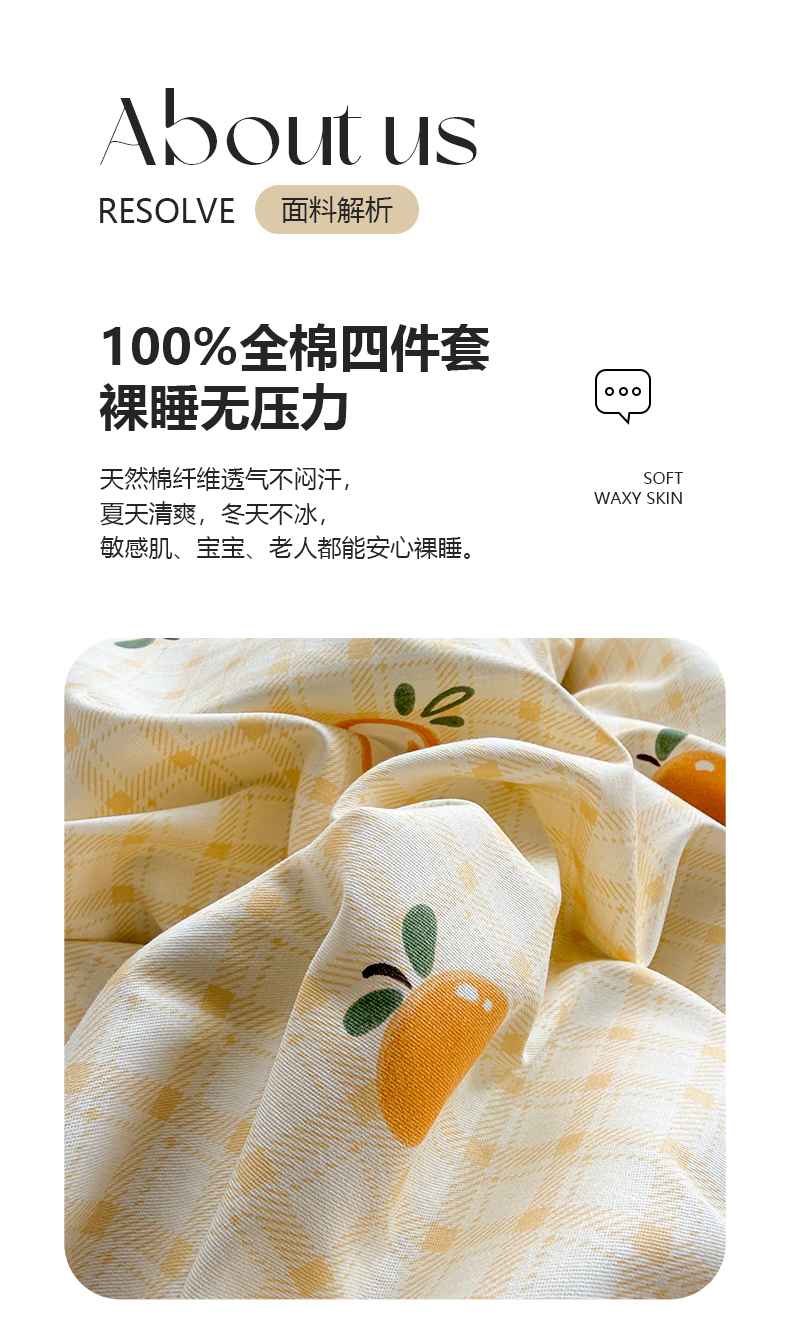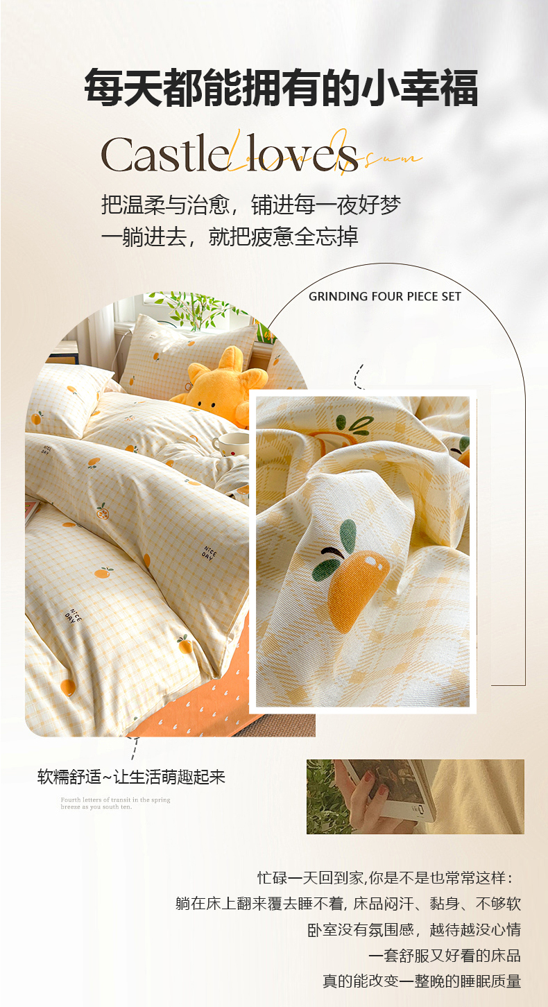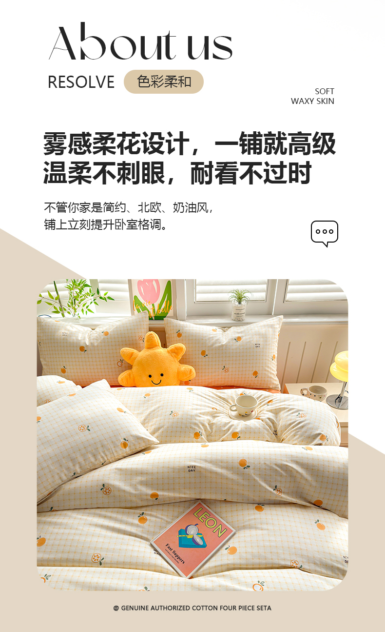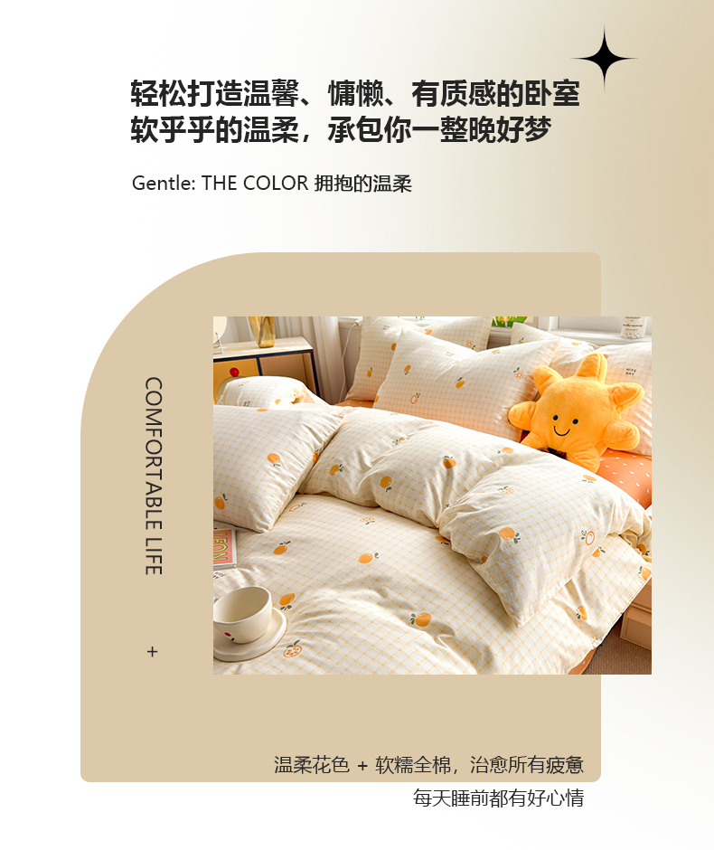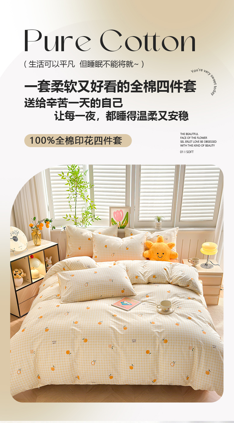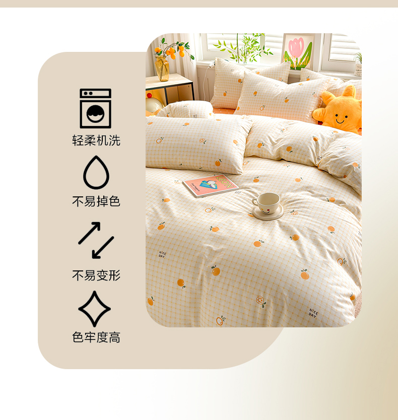 • 91家纺网 家纺一手货源 找家纺 黛妮雅 2026新款AB版全棉印花单被套床单枕套 送买家秀 橙意小格