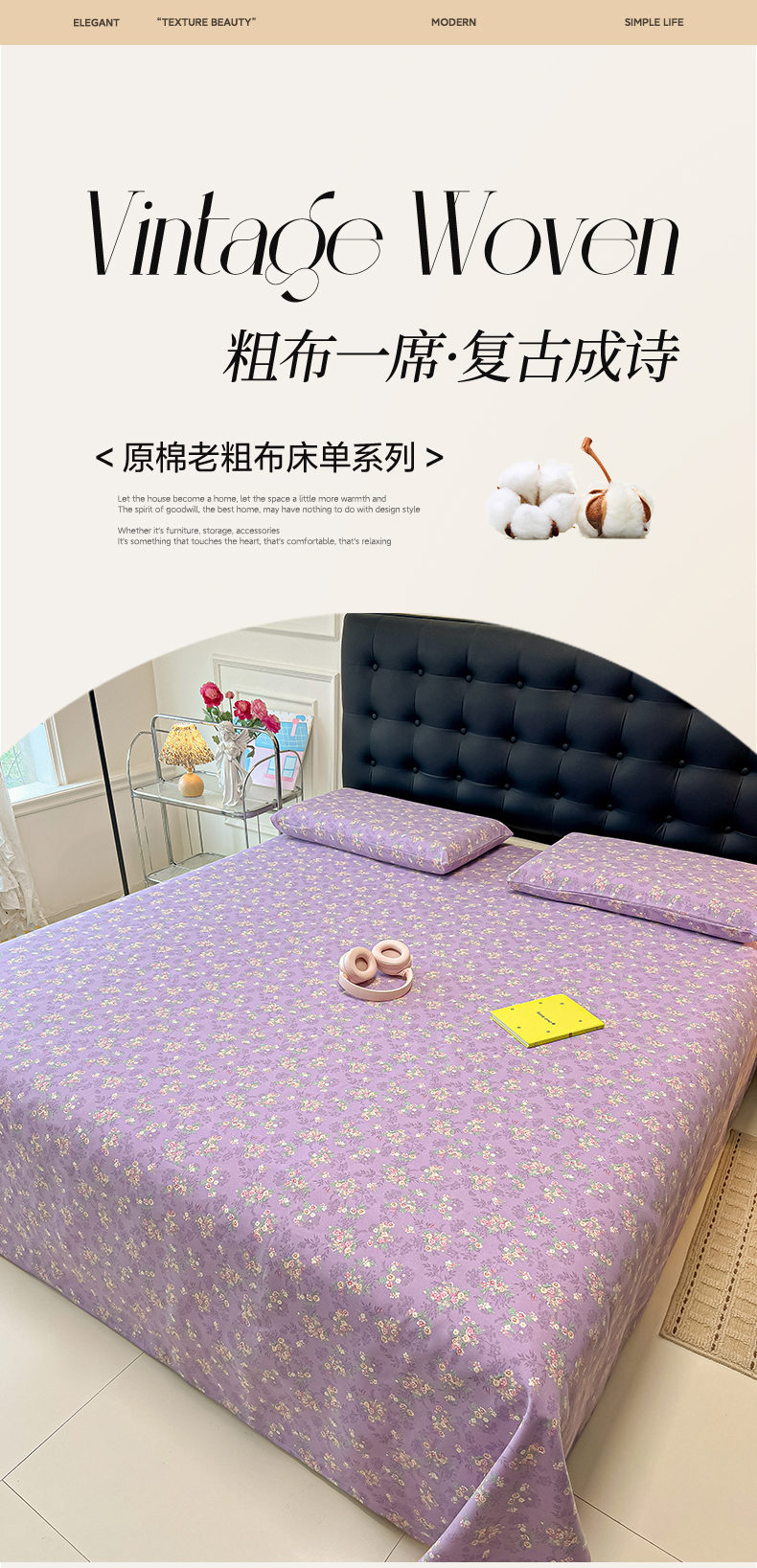 韩巢家纺 2026新款老粗布床单凉席席子床单单件 紫韵繁花【老粗布】