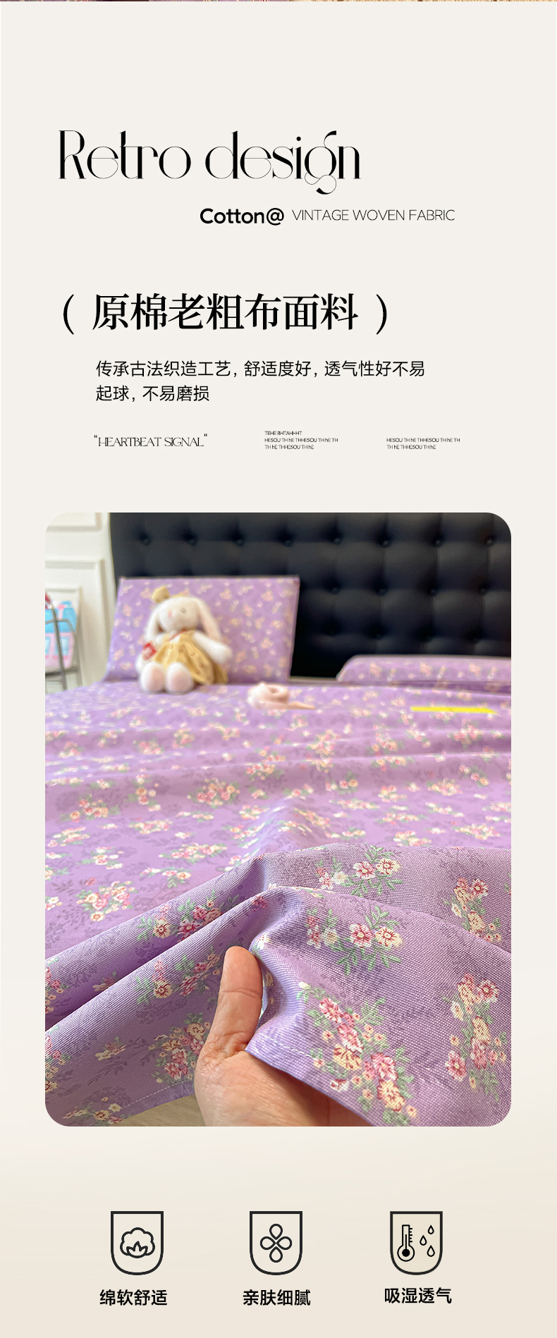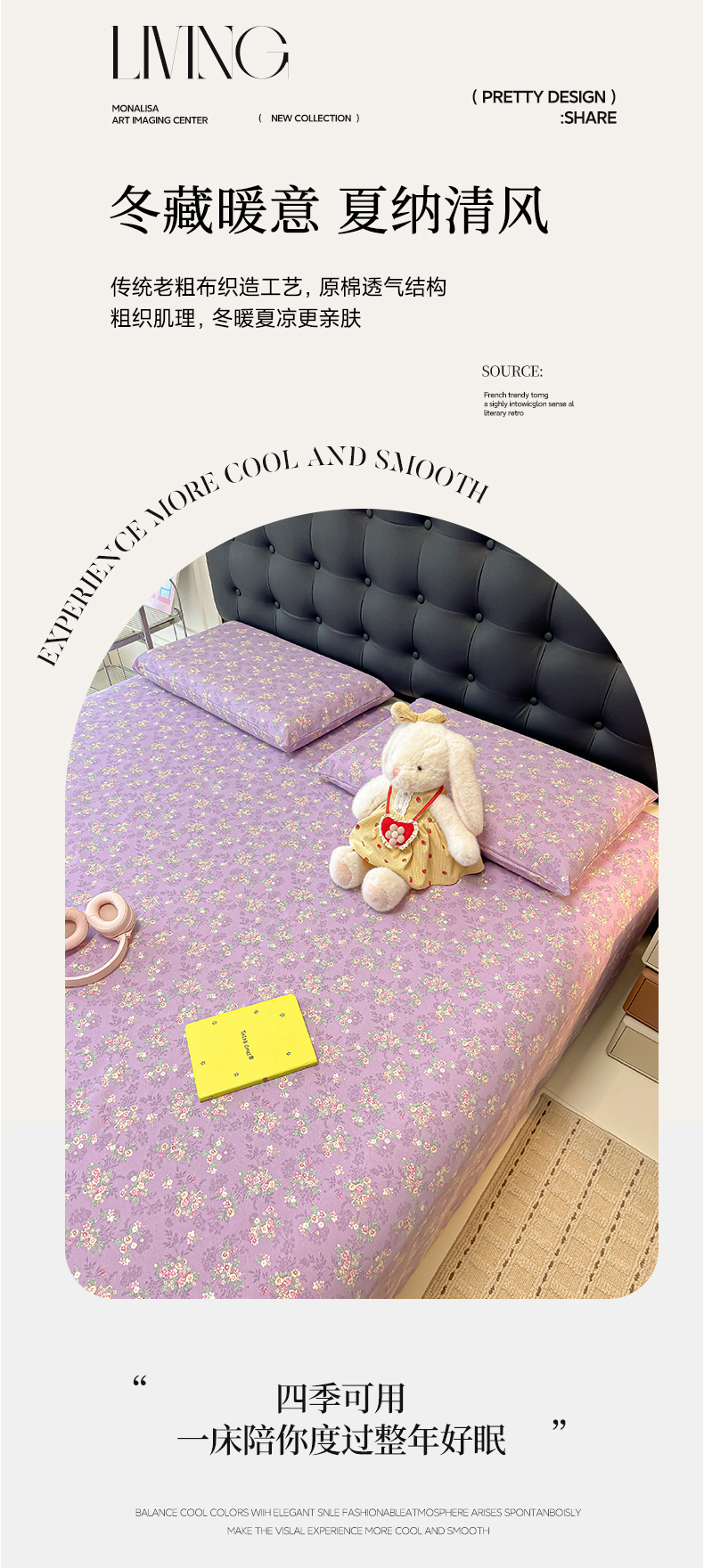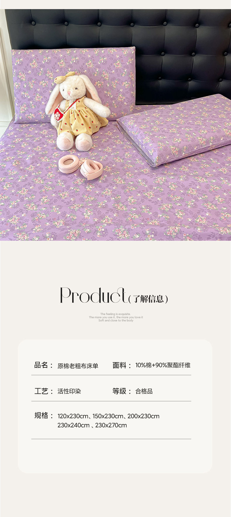 • 91家纺网 家纺一手货源 找家纺 韩巢家纺 2026新款老粗布床单凉席席子床单单件 紫韵繁花【老粗布】