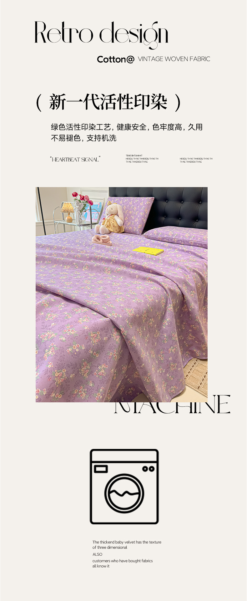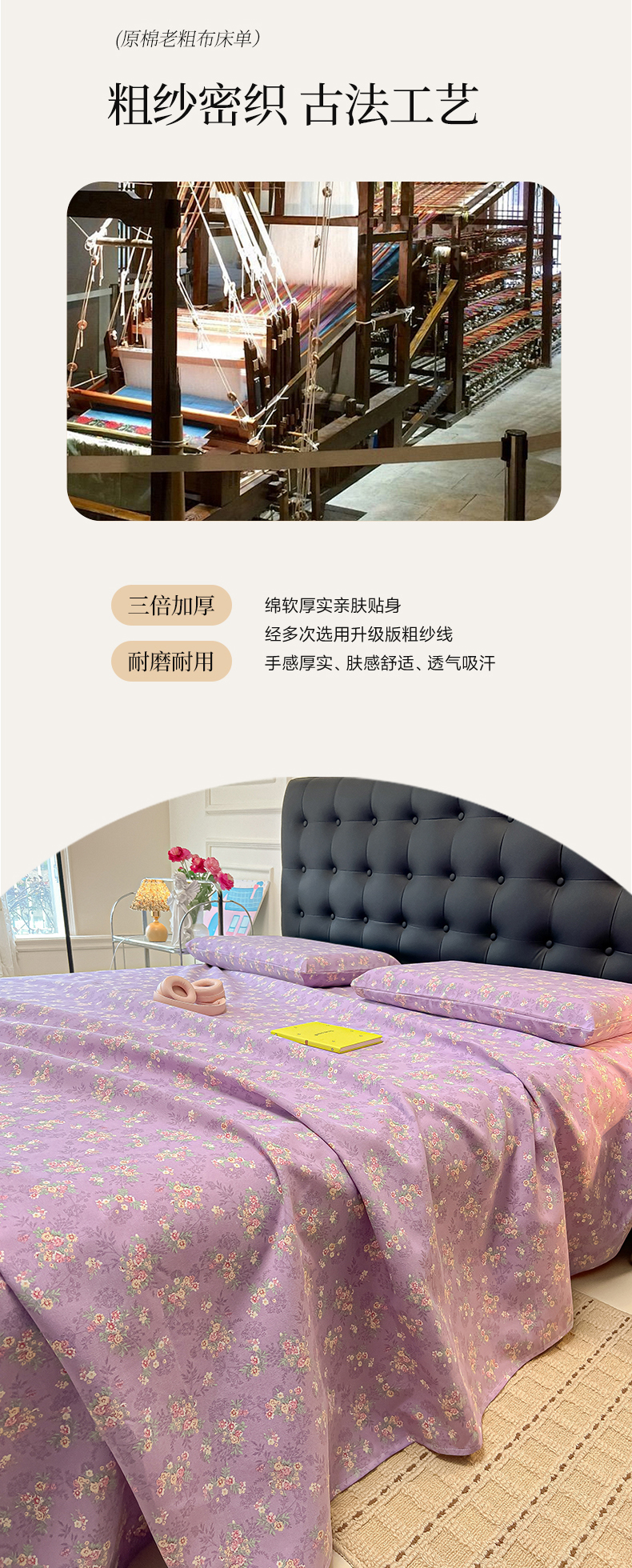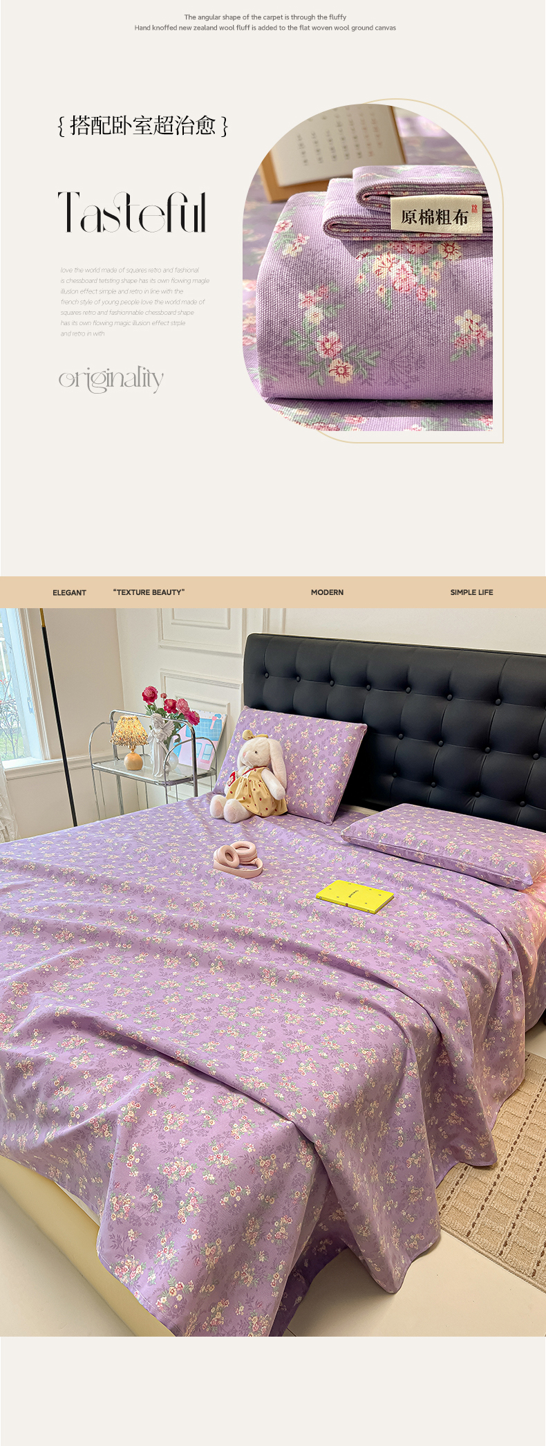 • 91家纺网 家纺一手货源 找家纺 韩巢家纺 2026新款老粗布床单凉席席子床单单件 紫韵繁花【老粗布】