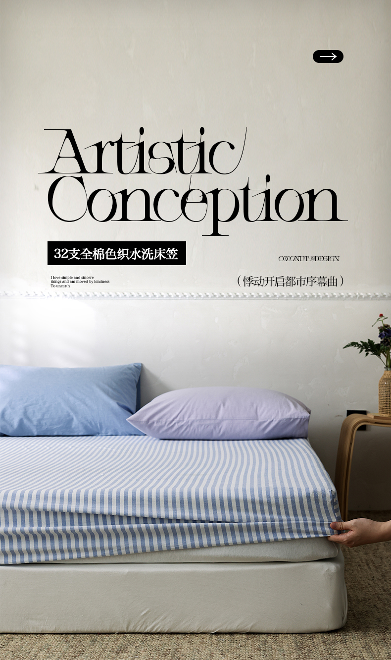 商品名称:(总)棉眠 2026新款调色盘全棉纯棉水洗棉混搭单品系列-条纹单床笠