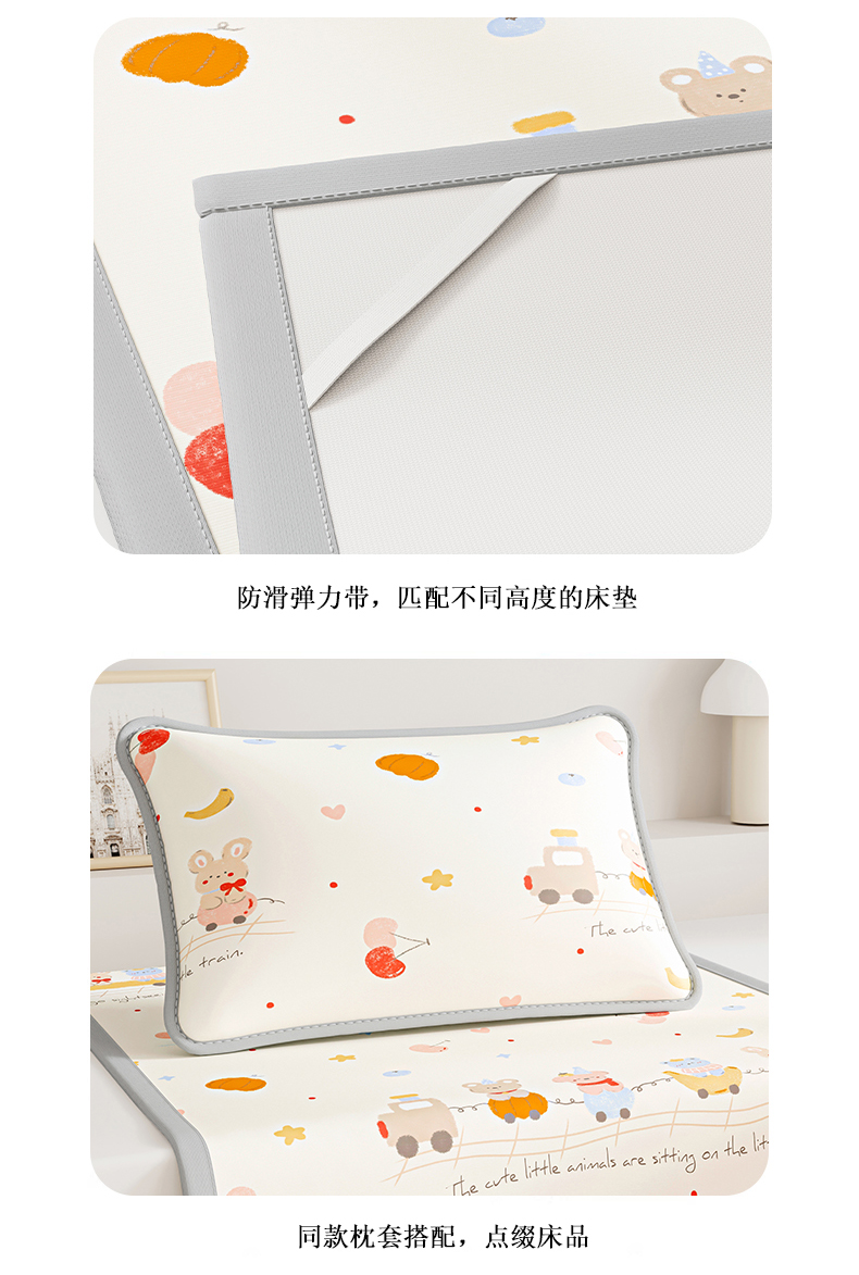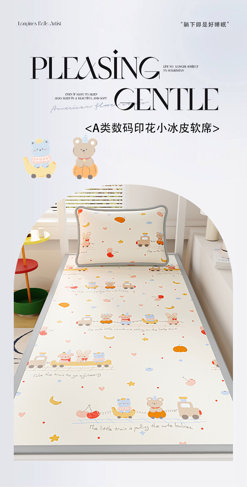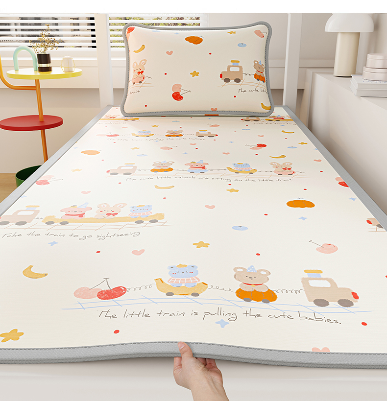 商品名称:奇丝雅 2026A类数码印花大版卡通冰丝凉席家用双人冰丝席可机洗单人学生宿舍夏天空调软席 萌宝小火车【三明治网底】