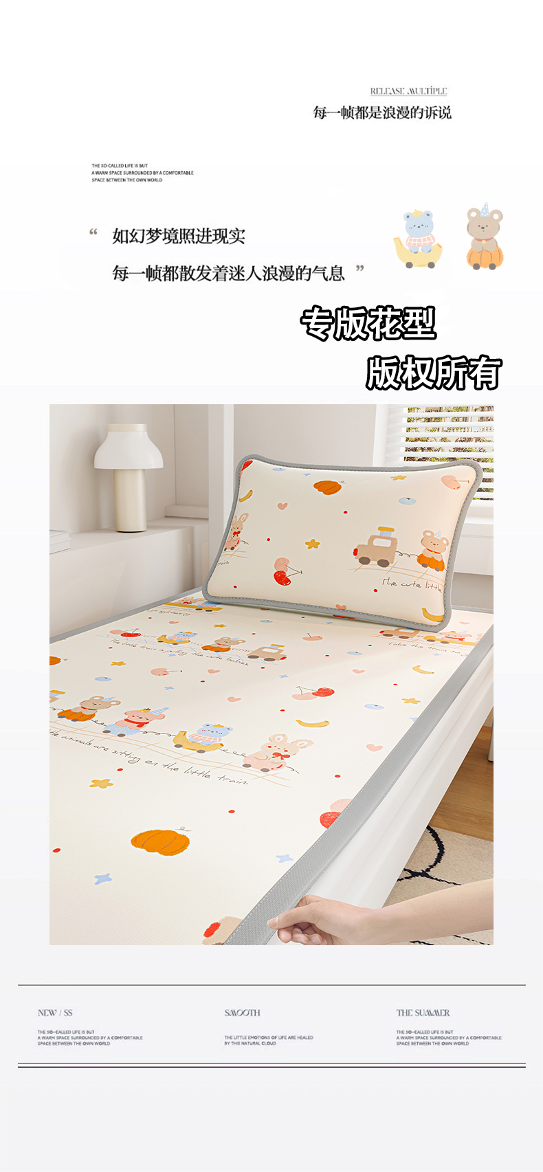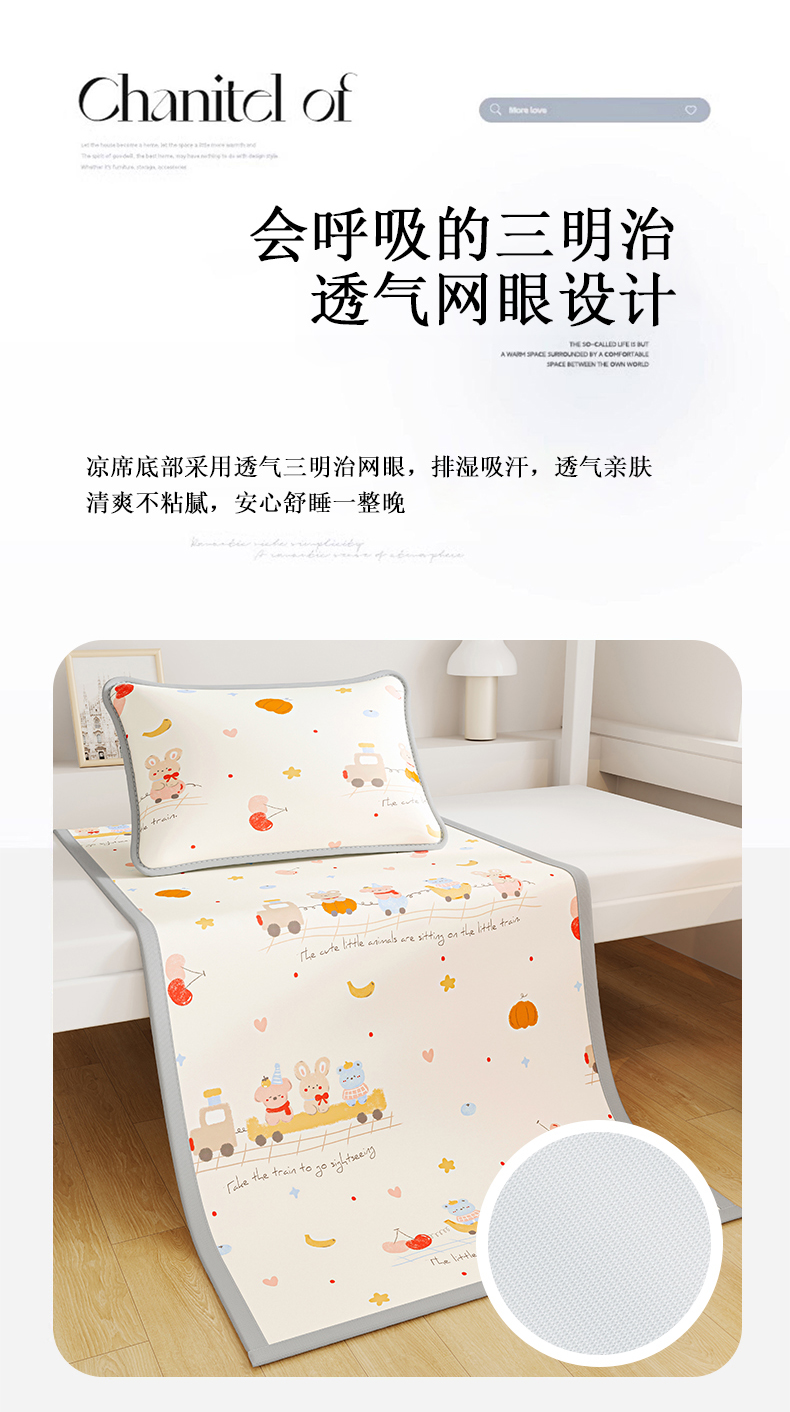 (总)奇丝雅 2026新款夏季A类印花冰豆豆凉席三明治透气网冰丝凉席可机洗学生宿舍上下铺学生床,巴比兔,抱抱熊,饼干熊,海洋世界,卡皮巴拉,蘑菇乐园,甜甜圈,兔宝贝,维尼熊,小企鹅,熊猫家园,叶语