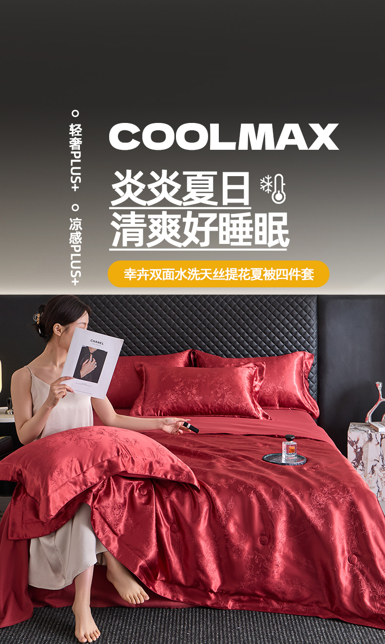 当前位置: 91家纺网 > 商品网购 > 床品套件 > 四件套 > 其它四件套 > 置顶家纺 2026新款双面水洗天丝提花夏被四件套-幸卉 幸卉-酒红
