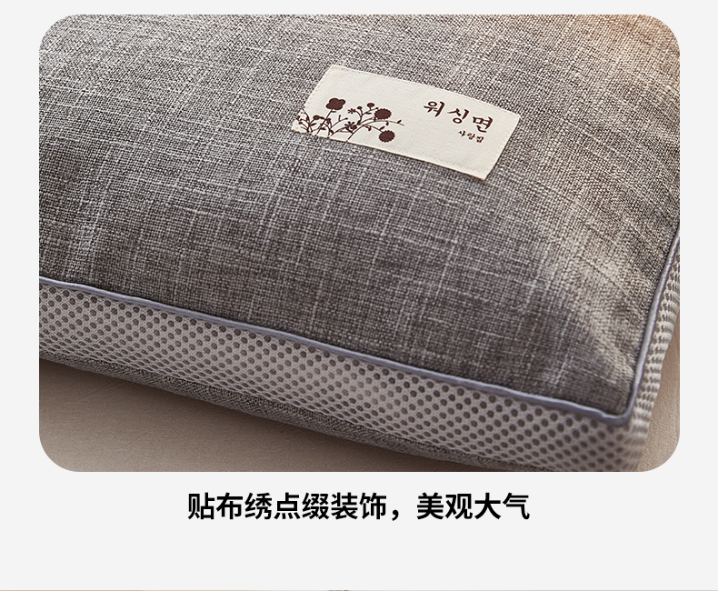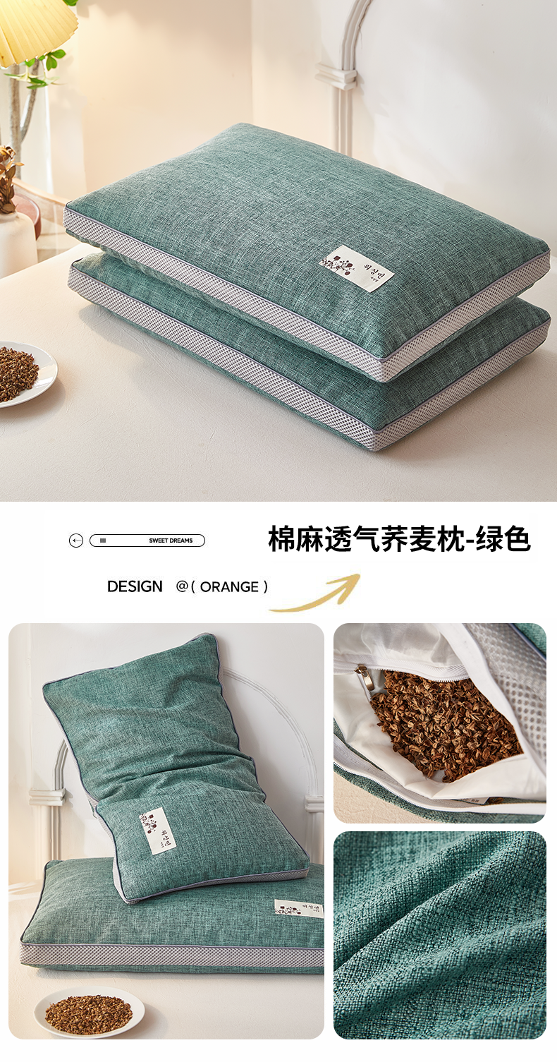 (总)梦叶草 2026新款棉麻贴布绣透气立体网荞麦枕 枕头枕芯,棉麻透气荞麦枕-灰色,棉麻透气荞麦枕-咖色,棉麻透气荞麦枕-蓝色,棉麻透气荞麦枕-绿色