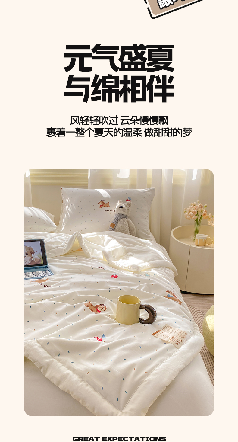 (总)憨豆家纺 2026新款双面全棉印花夏被可机洗小清新纯棉夏凉被薄被芯空调被子,雅格-灰,千野-绿,千野-紫,橙心如意,春风拂面,春色满园,胡萝卜,蝴蝶结,花都仙子,花香谷,花影轻颜,花园漫步,花之恋,简格,卡布奇诺,可爱乐园,恐龙日记,绿色格调,罗曼蒂克,蒙奇奇-蓝,蒙奇奇-米,墨兰,南瓜派对,轻盈如羽,清甜蜜果,时光意境,甜蜜约会,相思南国,小浣熊,星愿兔,雨汐,郁金花园,元气小熊,紫藤花语