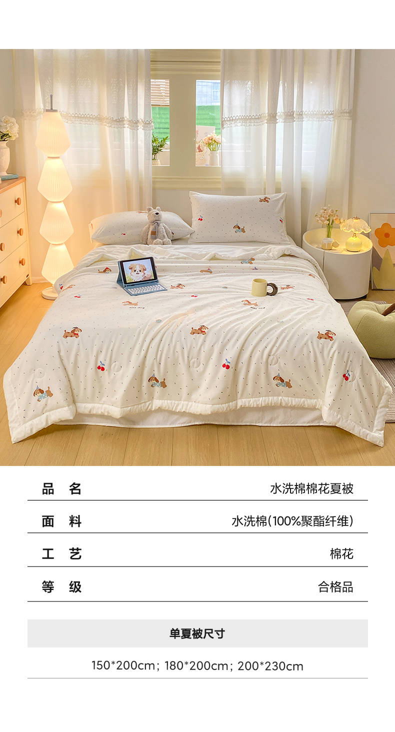 商品名称:憨豆家纺 2026新款云朵棉被水洗棉印花新疆棉花夏被夏凉被空调被子直播被芯(常年有货) 腊肠小狗