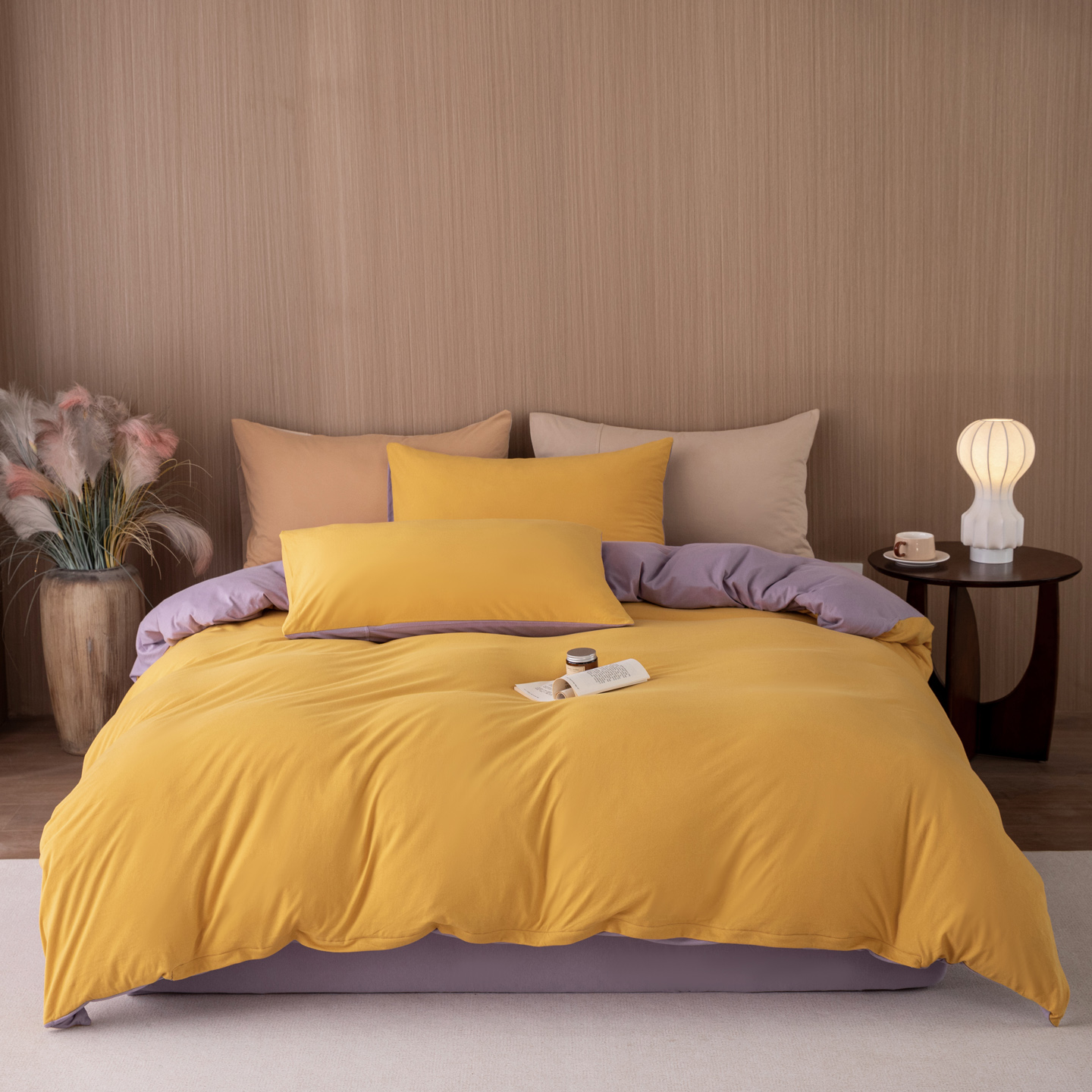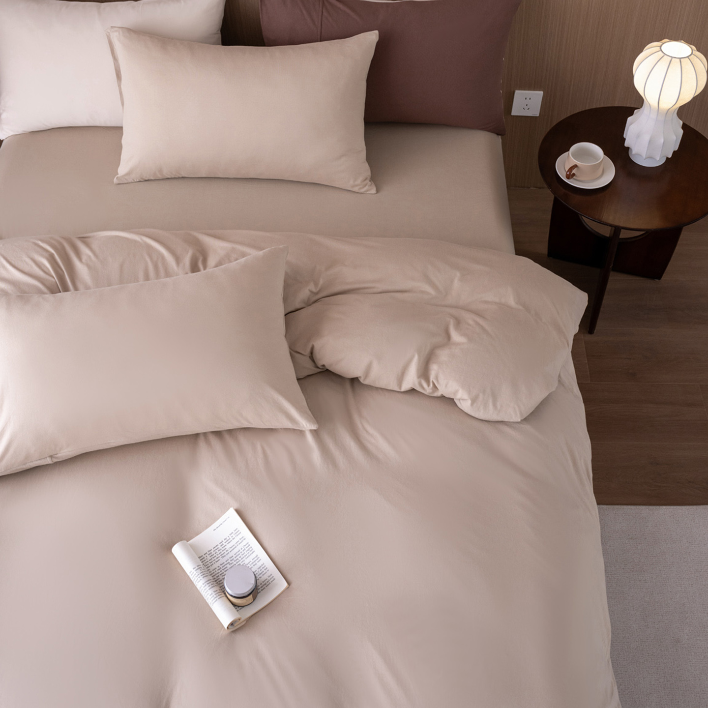 梦可莱家居 2026春夏新品全棉针织棉纯色双拼简约百搭时尚系列四件套 双拼-焦糖
