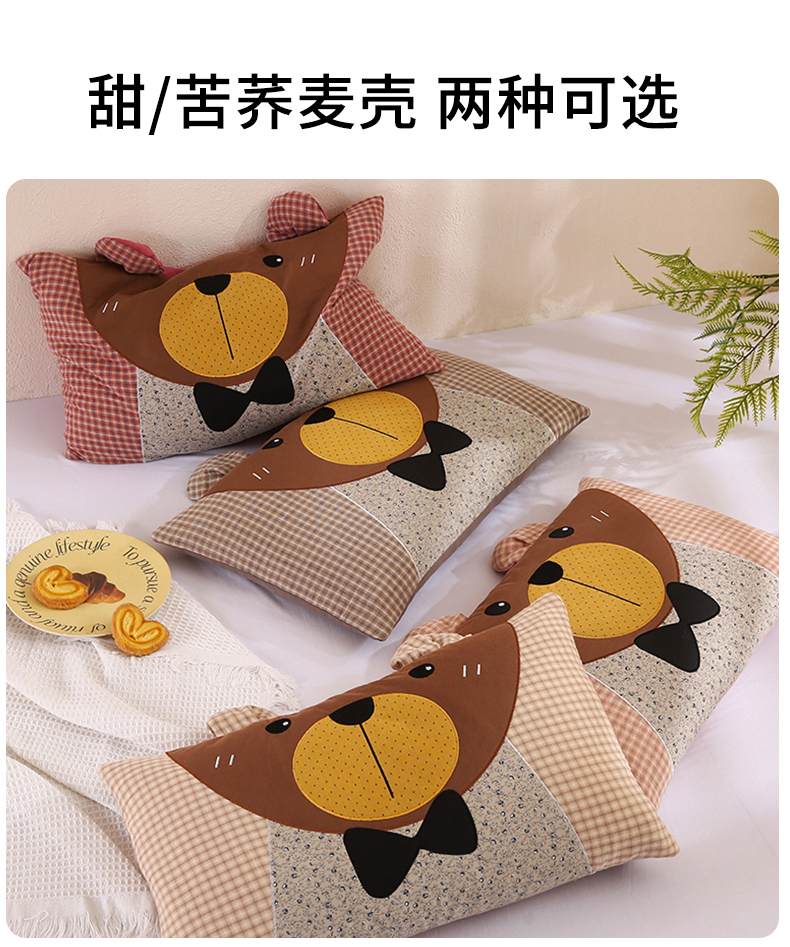 蔻眠 萌熊-全棉刺绣卡通荞麦护颈枕头儿童学生荞麦枕芯 主图