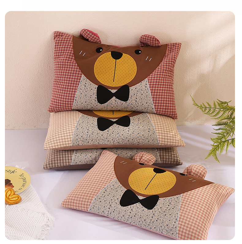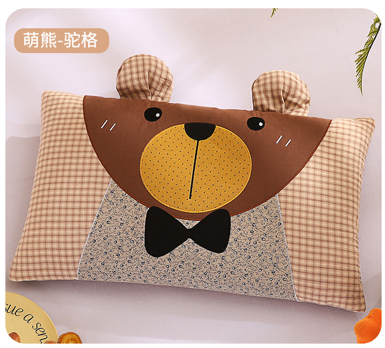 (总)蔻眠 萌熊-全棉刺绣卡通荞麦护颈枕头儿童学生荞麦枕芯,主图,萌熊-红格,萌熊-驼格,萌熊-粉格,萌熊-咖格