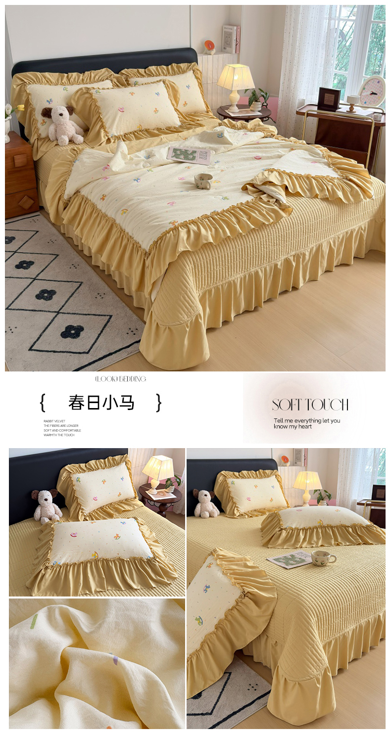 铠畅 2026新款法式宽边水洗棉泡芙纱床盖款夏被四件套 春日小马