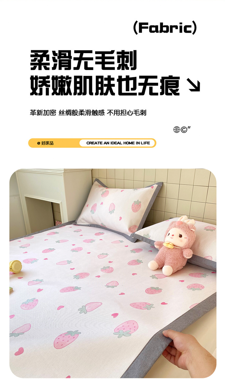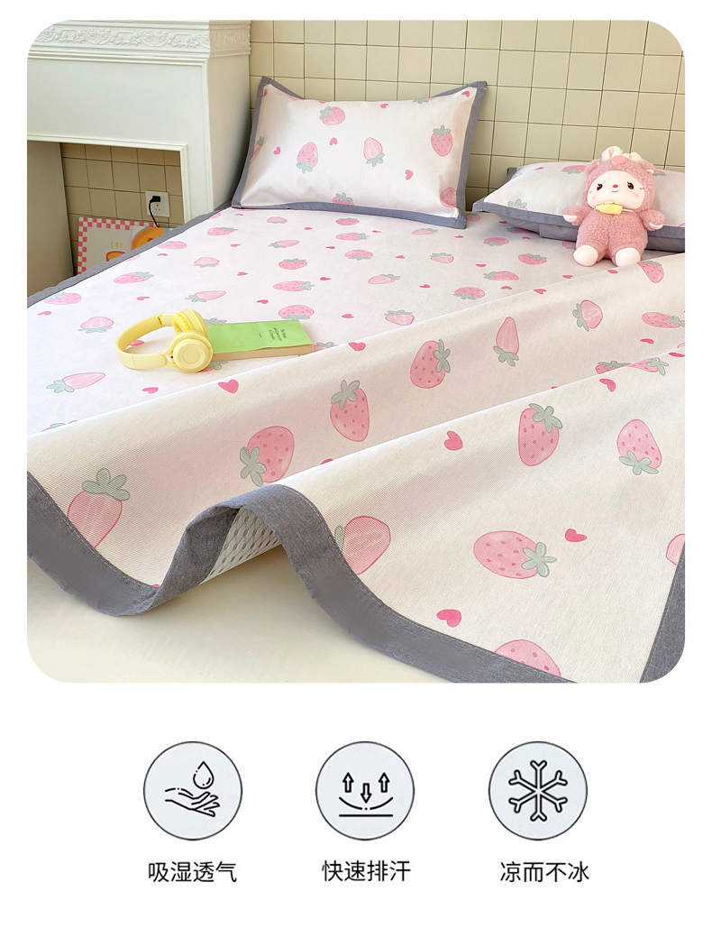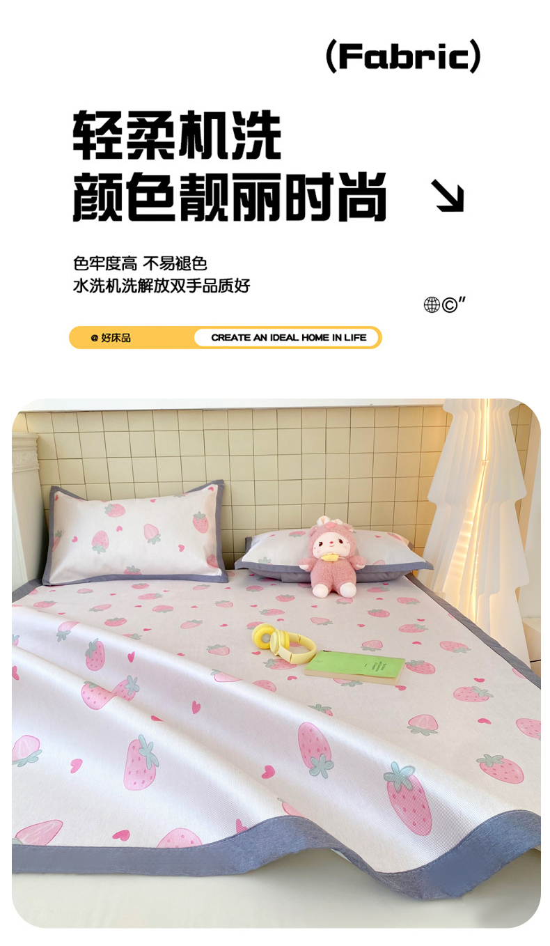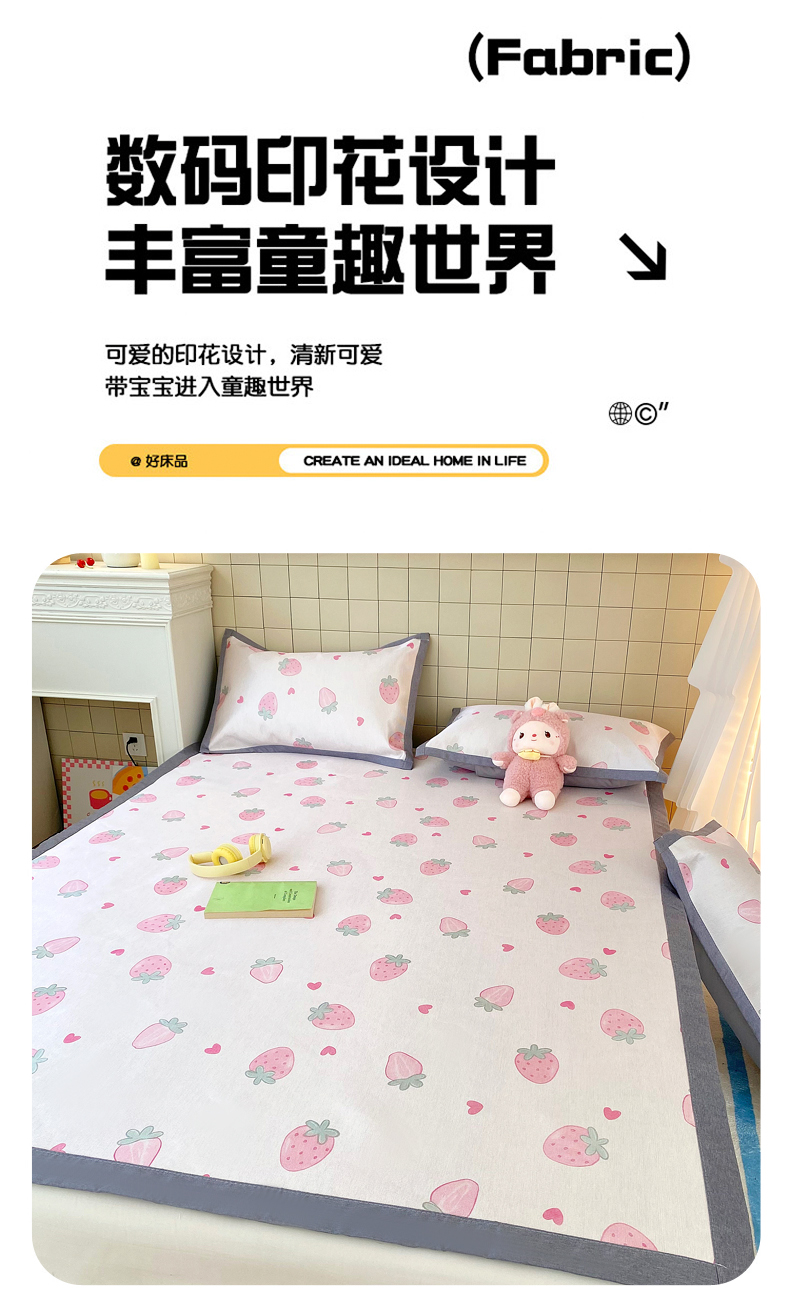 金盛纺 2026新款A类数码印花冰丝席(可定制)-床席款 草莓心