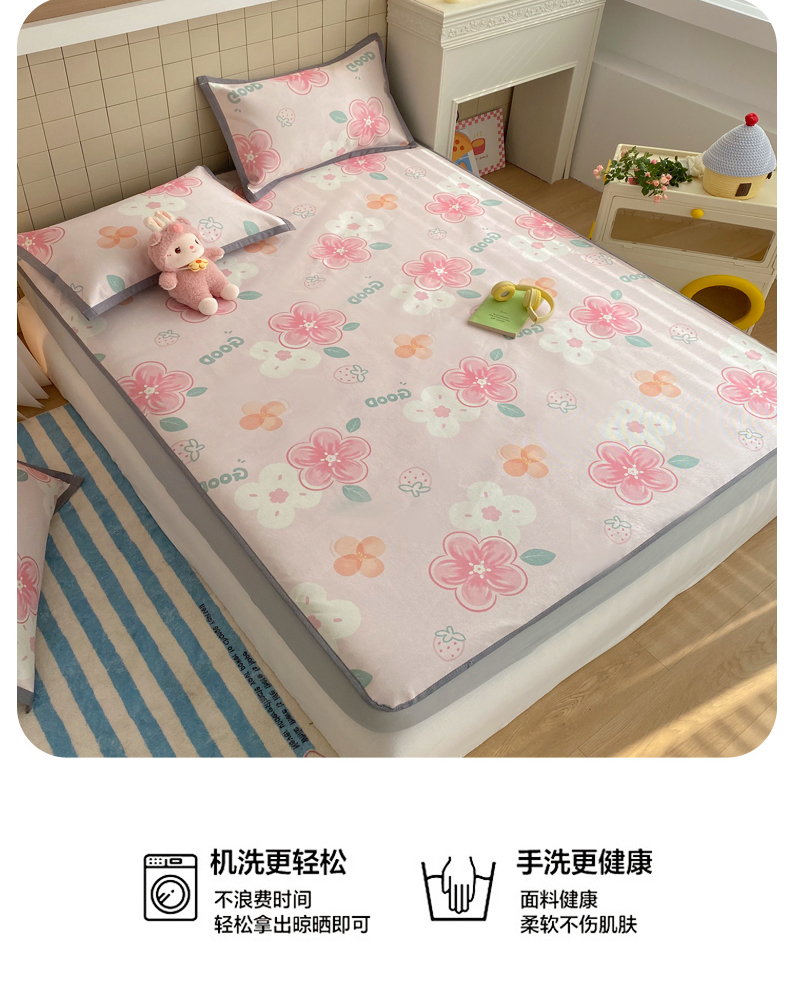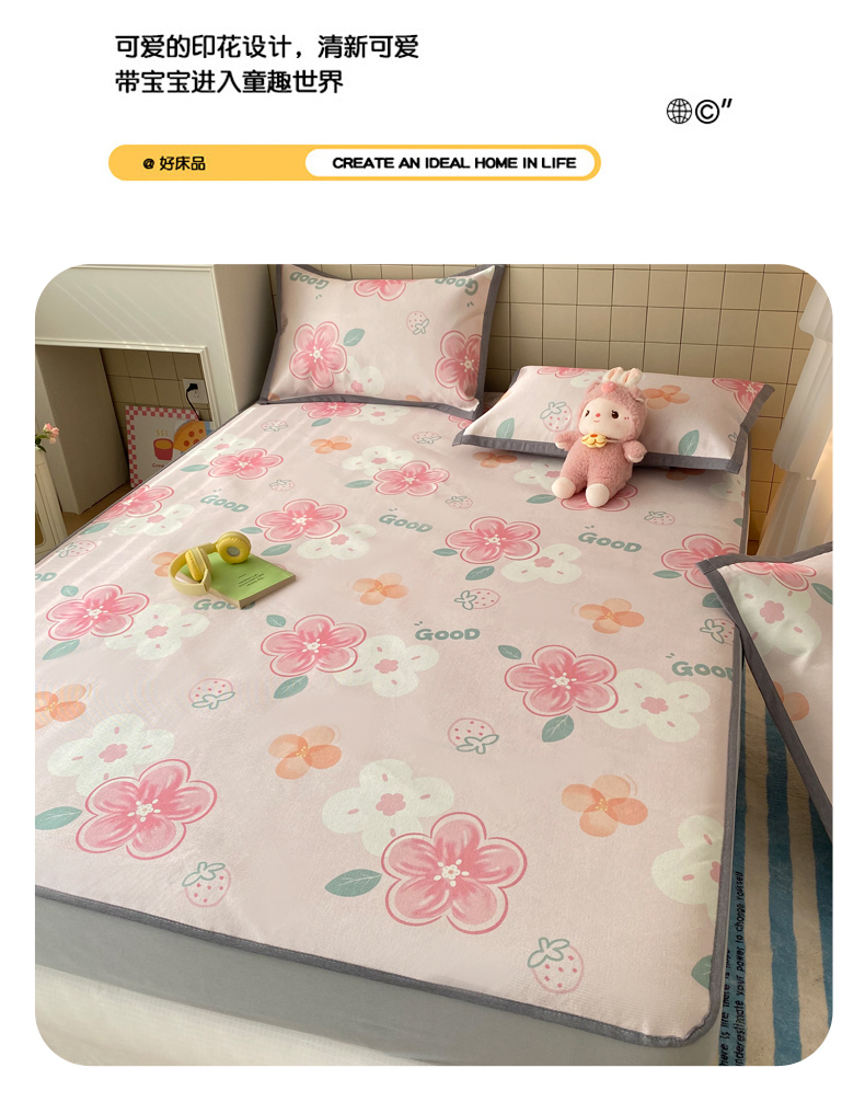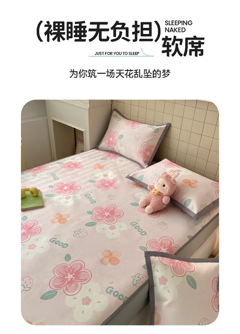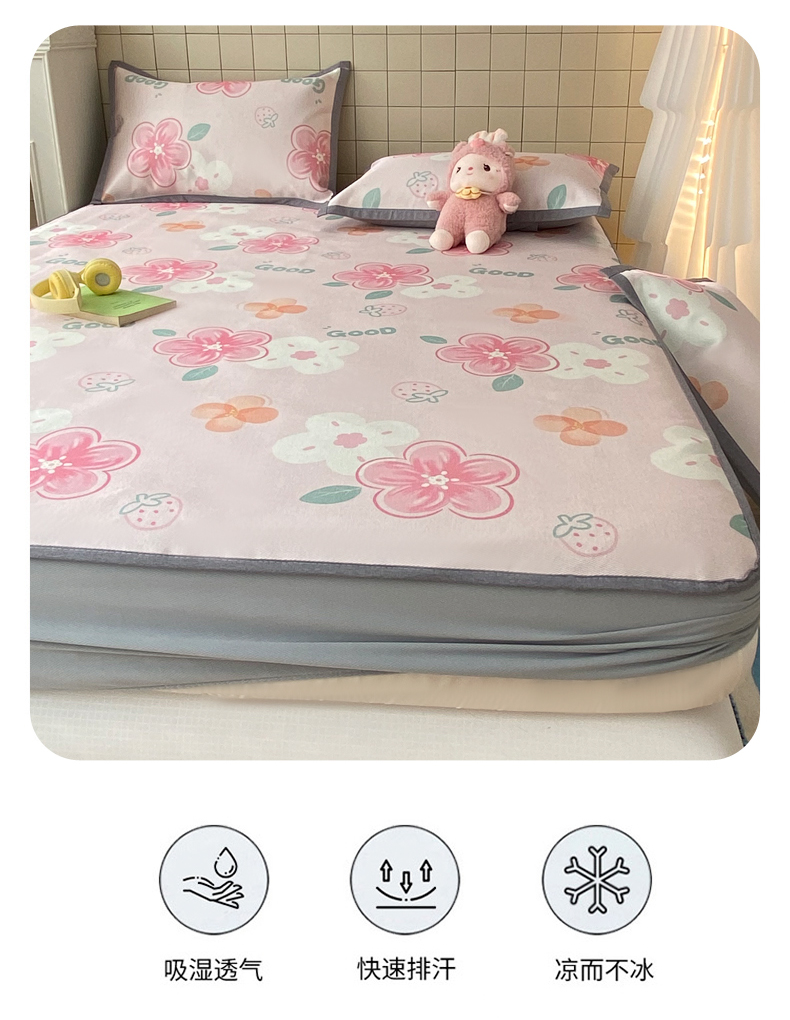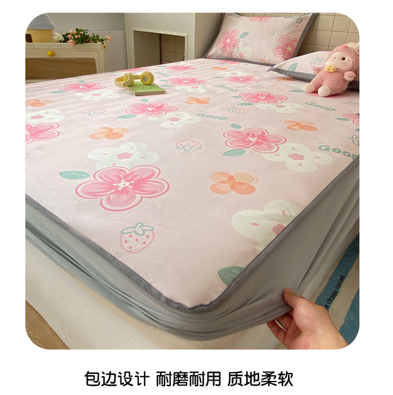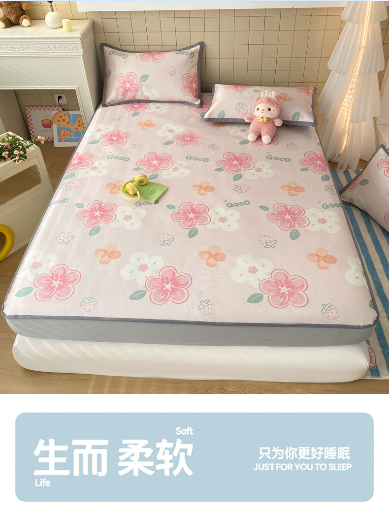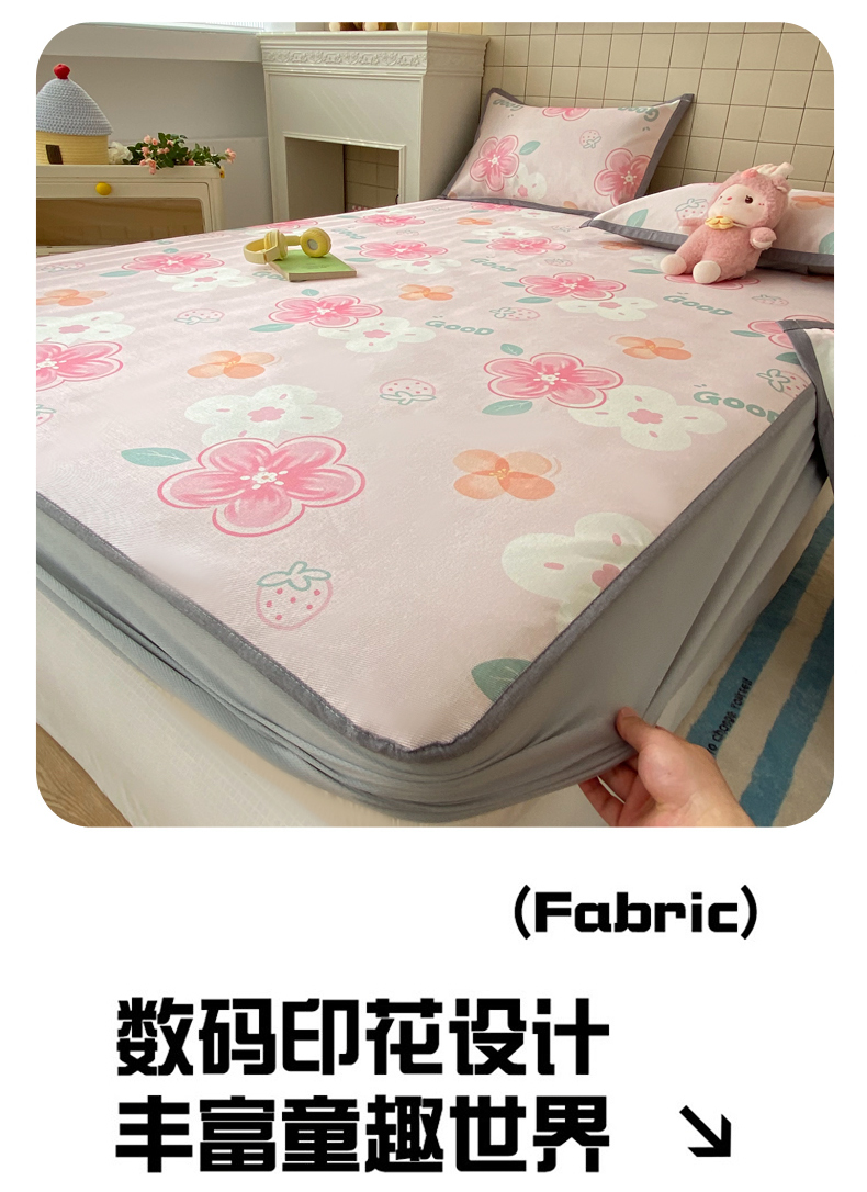 商品名称:金盛纺 2026新款A类数码印花冰丝席(可定制)-床笠款 花间甜语