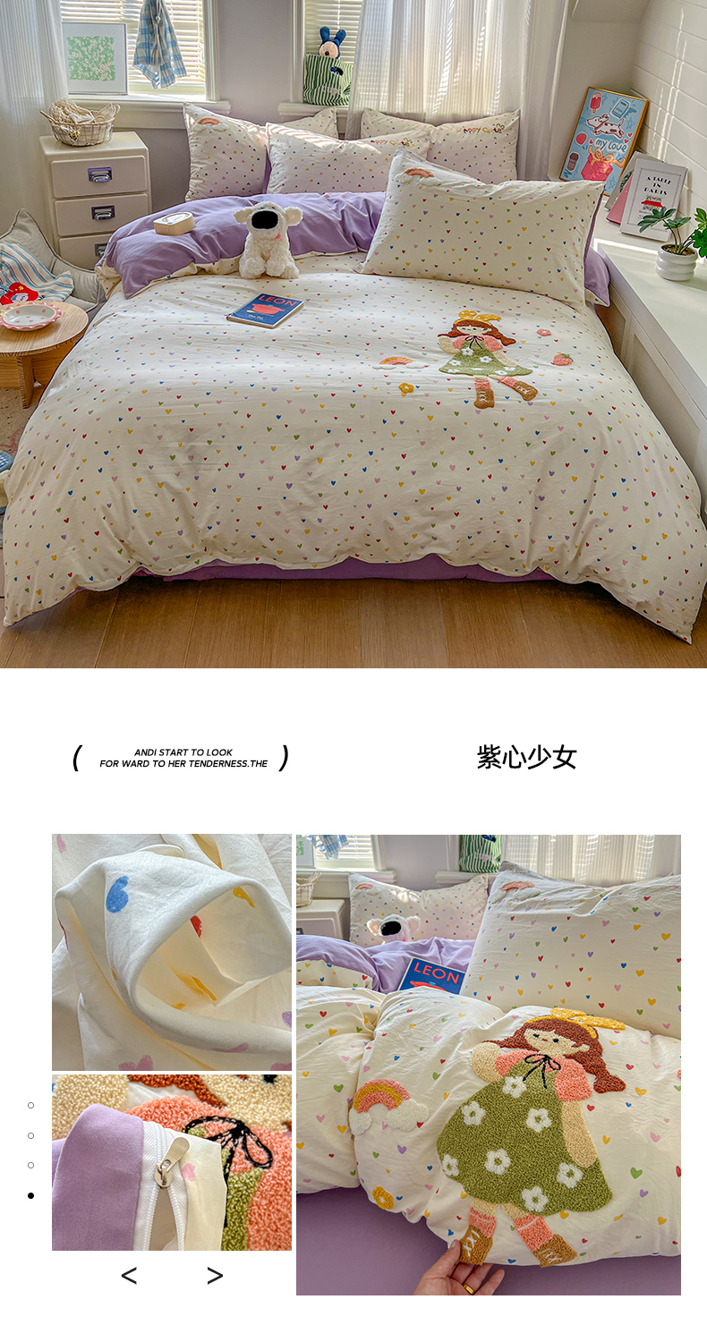 (总)一比一家纺 2026新款古法水洗仿棉云感纱A类四件套,知秋,白兰地,彩波波,草莓点点,格纹狗,嗨皮狗,赫莲娜,花千朵,花絮,酱果,蓝小格,莉莉安,梦幻灰,南瓜果果,葡萄,浅梦,森屿,疏影,甜心草莓,甜心喵,条纹狗,童趣,小黄花,小木马,小时光,小幸运,修修狗,薰衣草,灰樱桃,樱桃熊,鱼多多,组合图仅做展示不可下单,快乐时光
