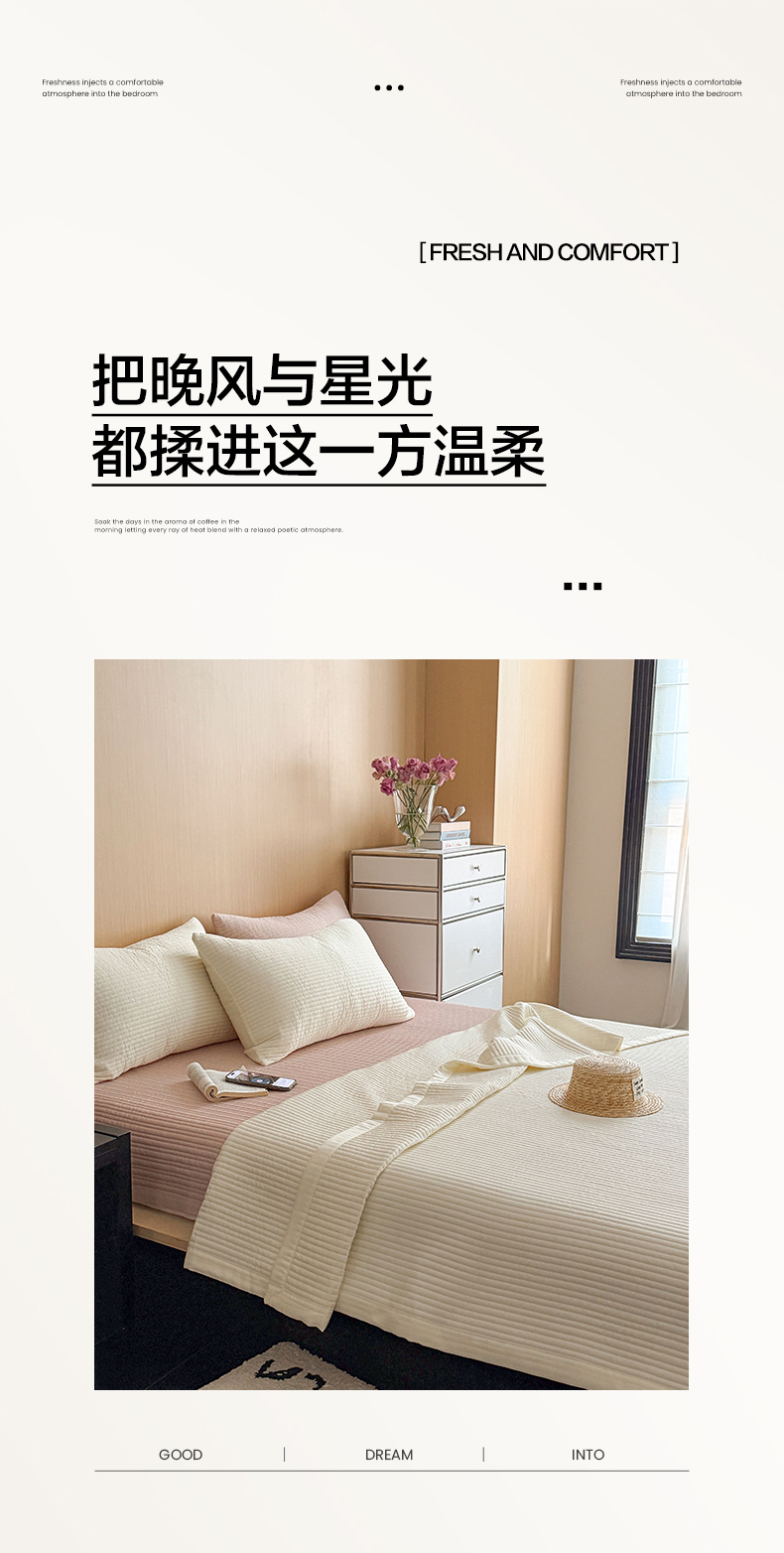 (总)漫调家纺 2025新款繁星绗缝夏被 复古风实拍,繁星白,繁星粉,繁星灰,繁星咖,繁星绿,繁星杏