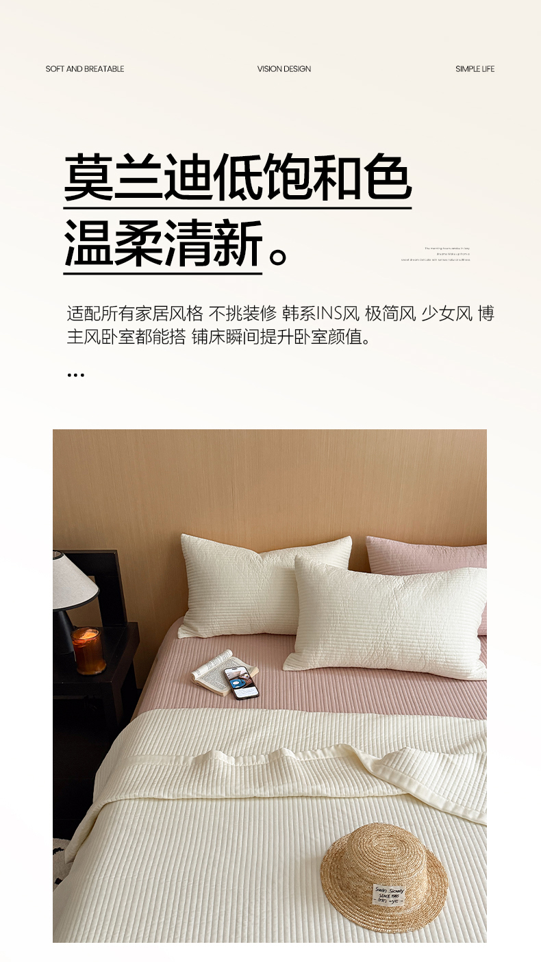(总)漫调家纺 2025新款双面60S贡缎床盖夏被,春荷绿,淡奶昔,摩卡棕,柔雾粉,银月灰,珍珠白