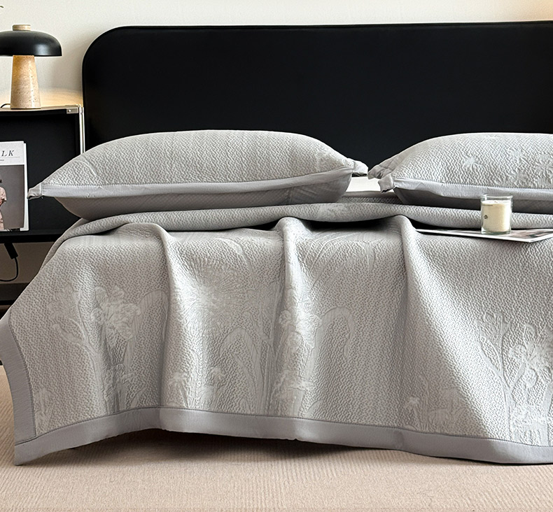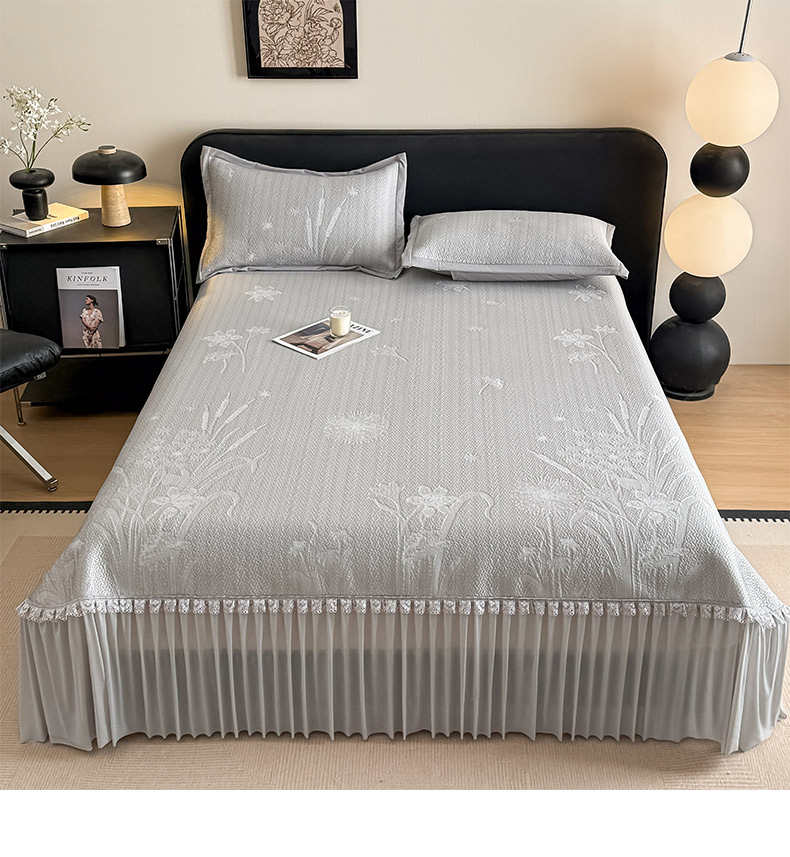 鑫琪莱家纺 2026新款提花浮雕凉豆豆凉感凉席床单款 蒲公英灰