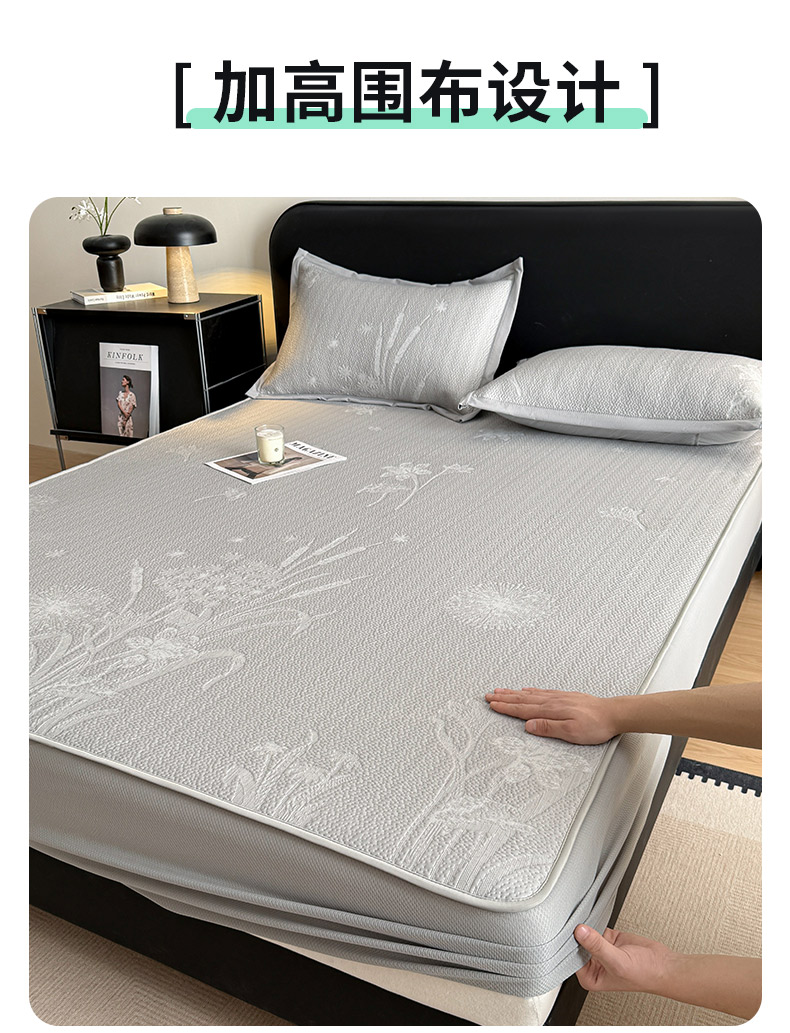 (总)鑫琪莱家纺 2026新款提花浮雕凉豆豆凉感凉席床笠款,蒲公英粉,蒲公英灰,蒲公英蓝,蒲公英绿