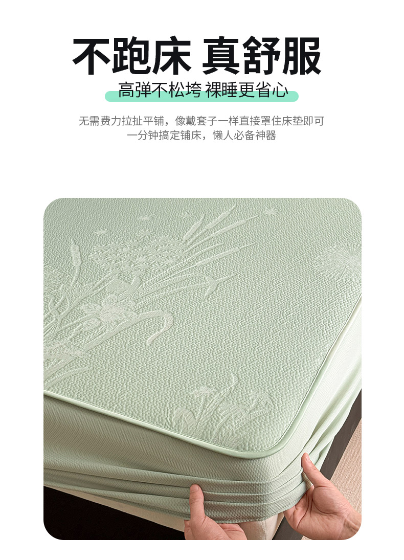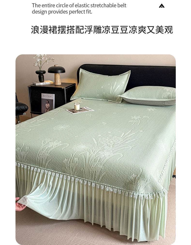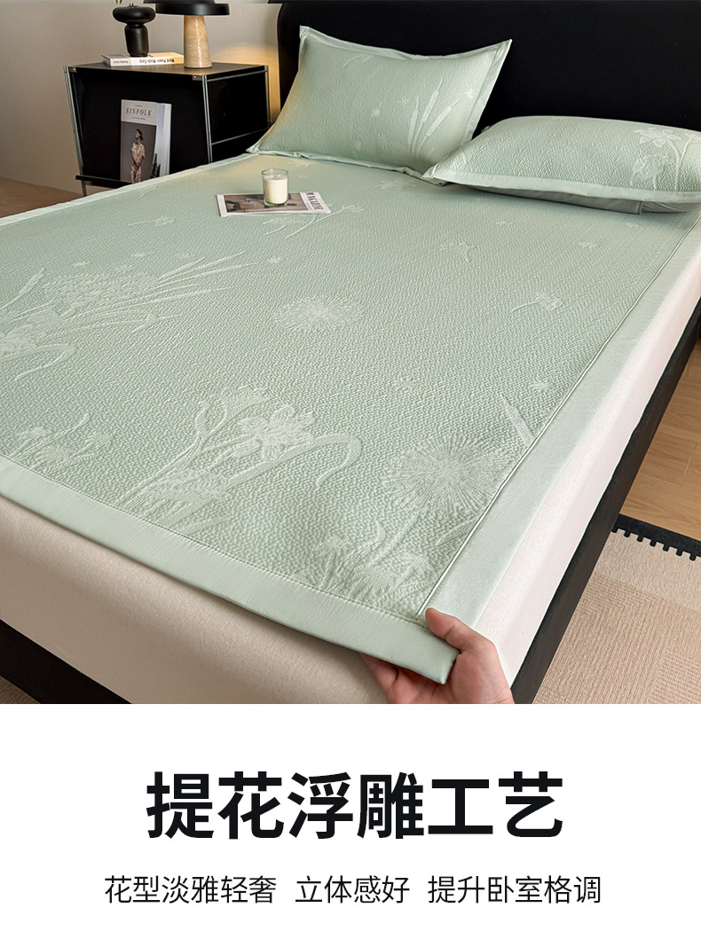 商品名称:鑫琪莱家纺 2026新款提花浮雕凉豆豆凉感凉席床笠款 蒲公英绿