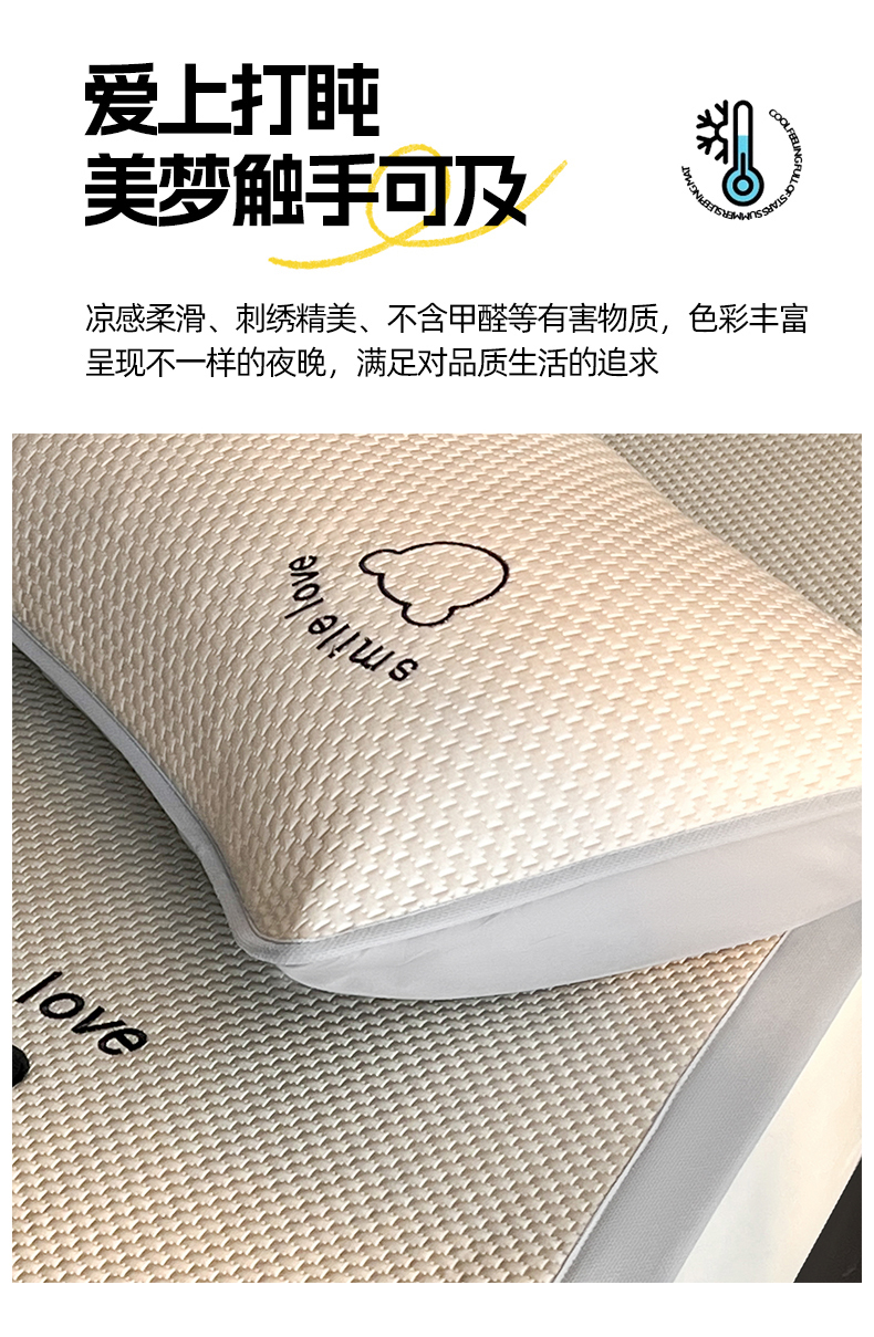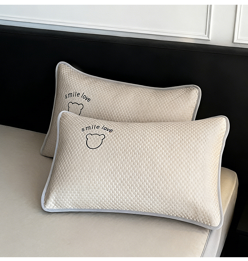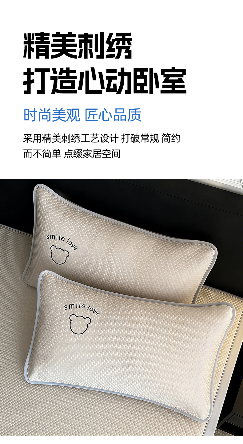 商品名称:(总)2026新款夏季A类绣花PE冰豆豆冰丝凉席枕套凉感家用单人学生宿舍48×74cm一只一对-八宝熊枕套