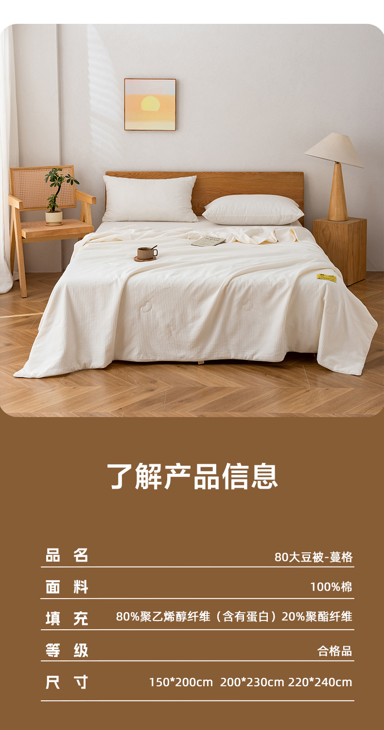 (总)A+爱家(纪梵茜) 2026新款李官奇全棉30%大豆被夏被空调被芯-小棉豆,小棉豆