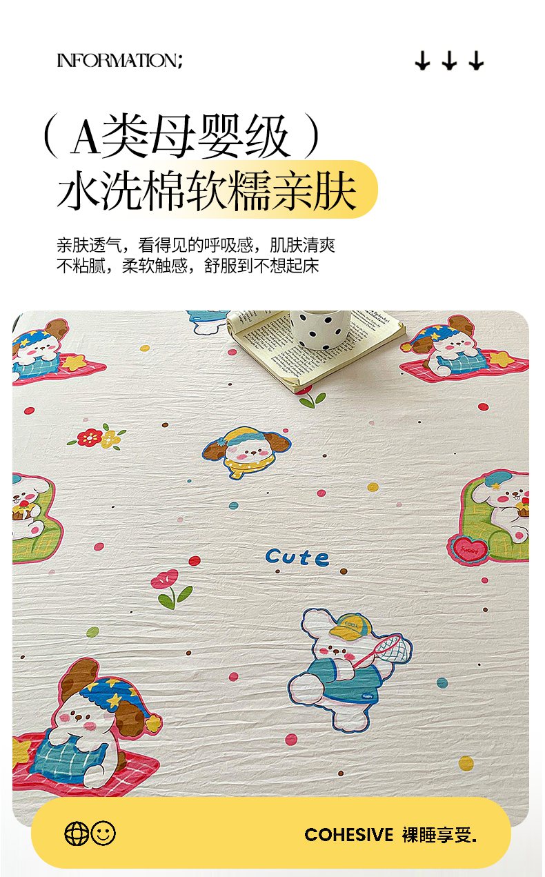 纽缦家纺 2026新款A类105g仿棉四件套古法水洗棉学生单床笠 慕尼