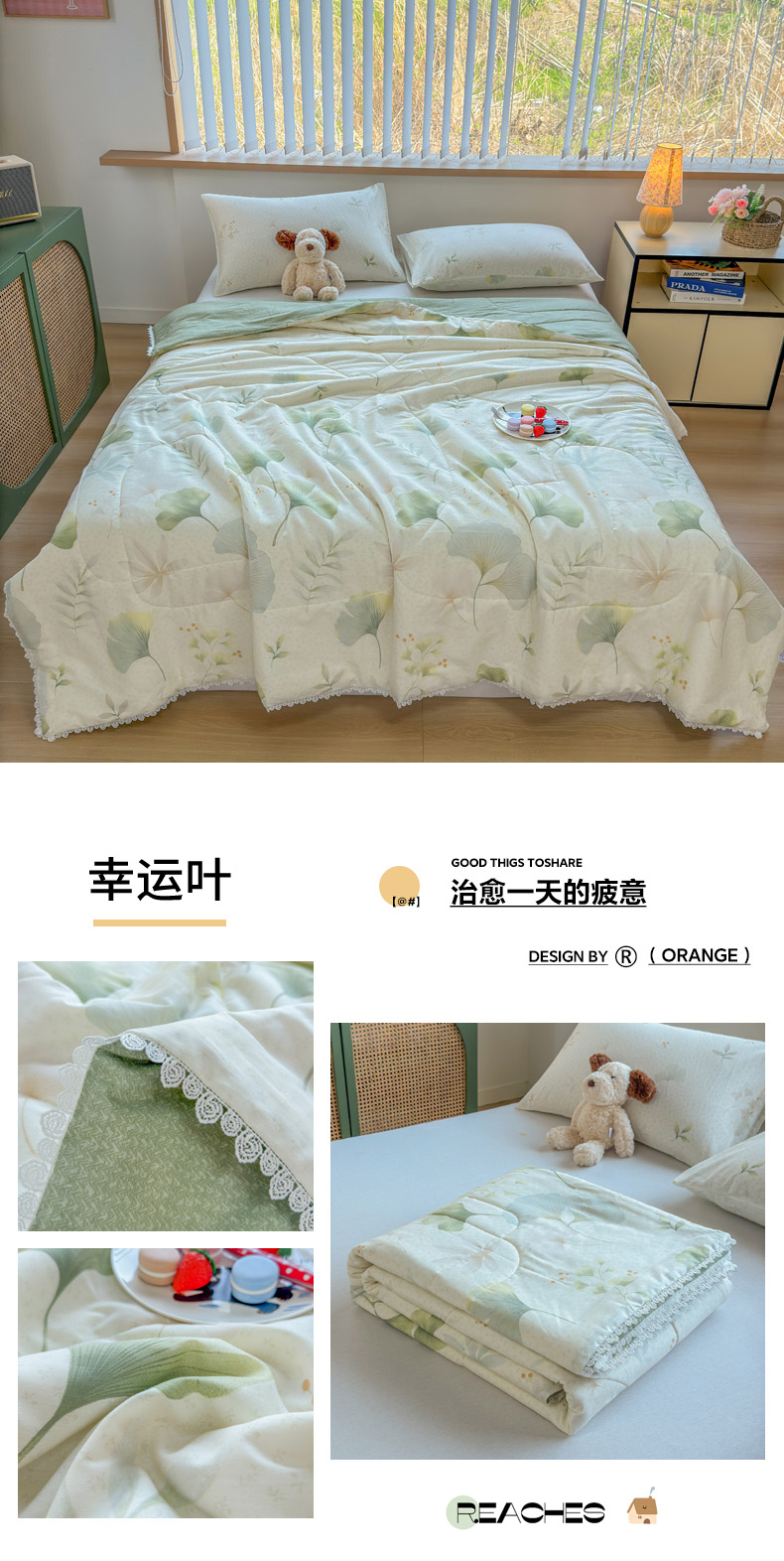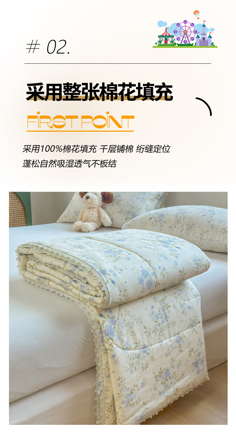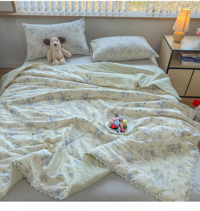 晨晨家纺 2026新款双面全棉花边款新疆棉花夏被 汀兰点素