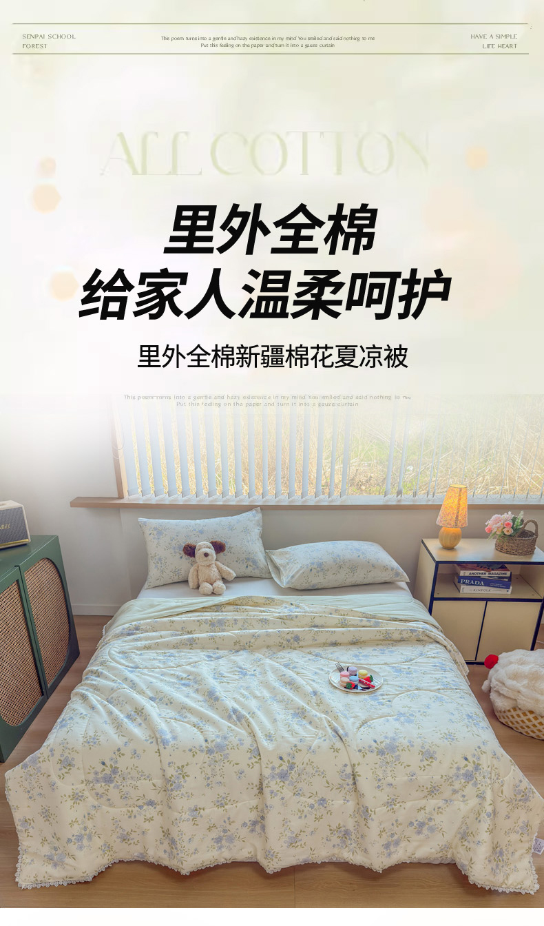 商品名称:晨晨家纺 2026新款双面全棉花边款新疆棉花夏被 汀兰点素