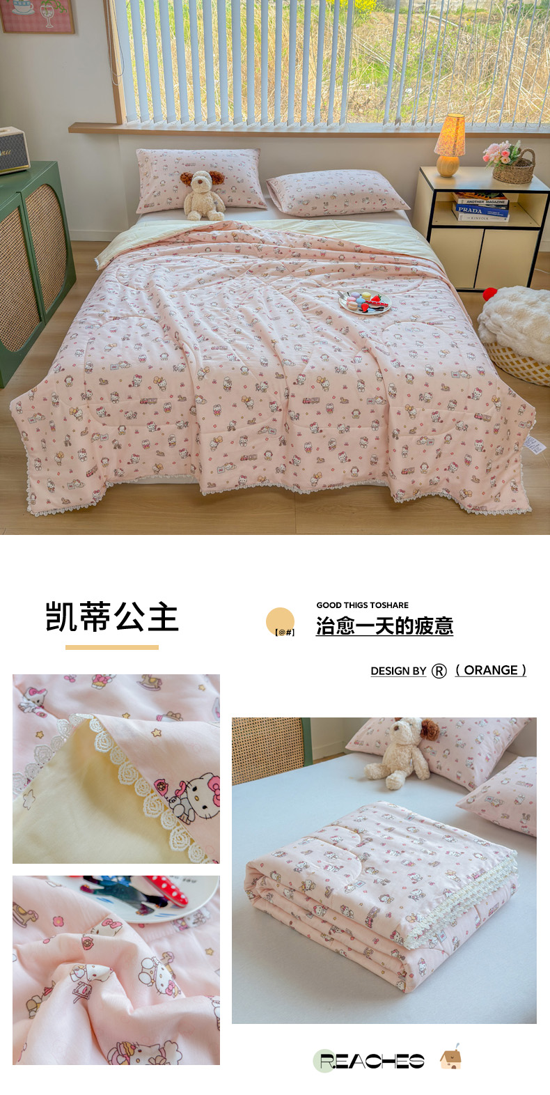 (总)晨晨家纺 2026新款双面全棉花边款新疆棉花夏被,饼干熊,花韵,凯蒂公主,马上有钱,泡泡熊,葡萄,汀兰点素,幸运叶