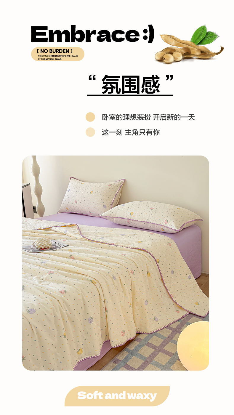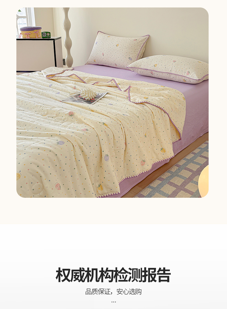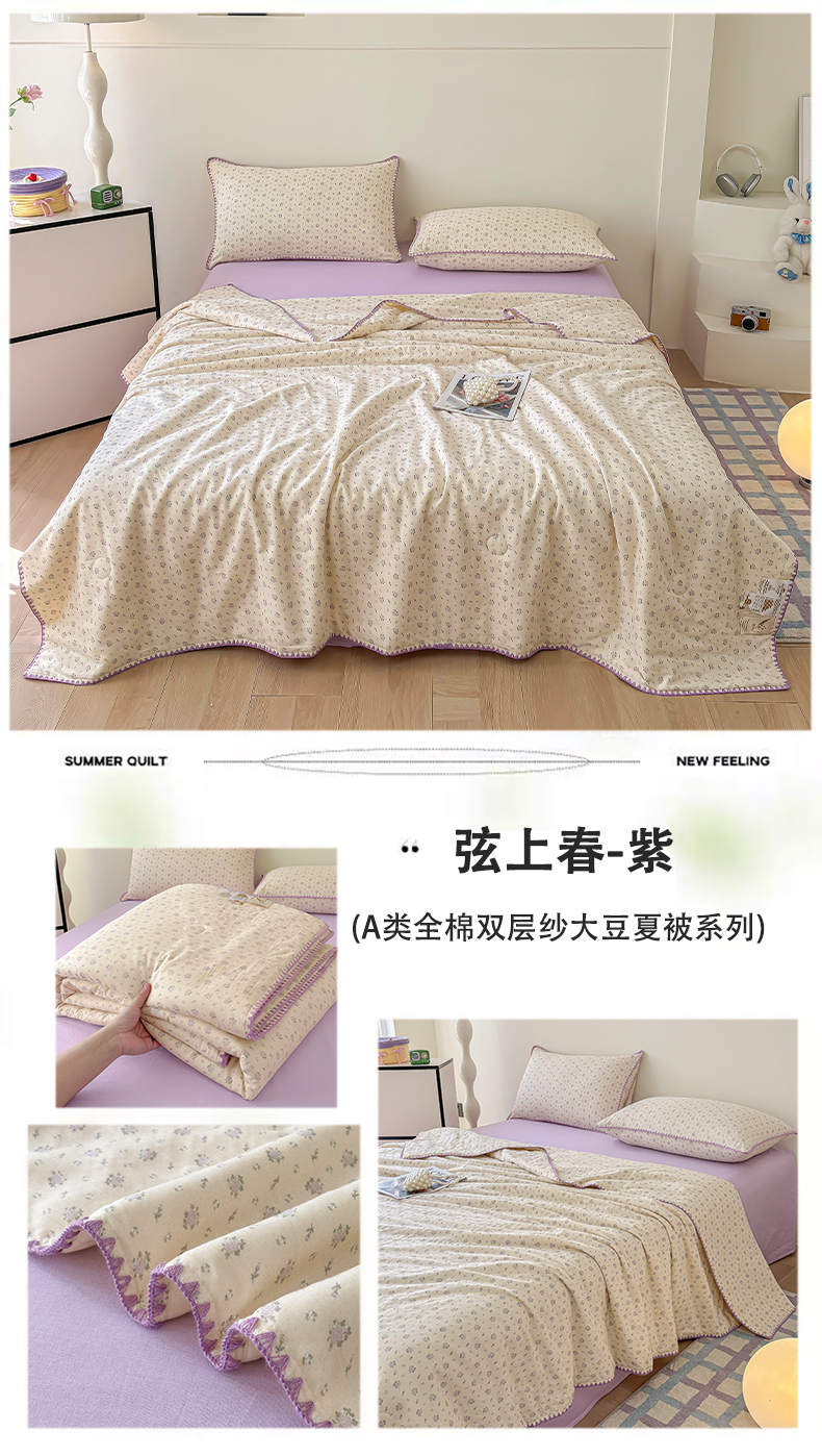 (总)爱她美家纺 2026新款A类全棉有氧双层纱大豆夏被夏凉被空调被四件套,草莓点点,春意,格调-兰,腊肠犬-咖,琉夏-绿,太空熊猫-米,旺旺南瓜,弦上春-紫,樱桃酱-粉,尤克里里-兰